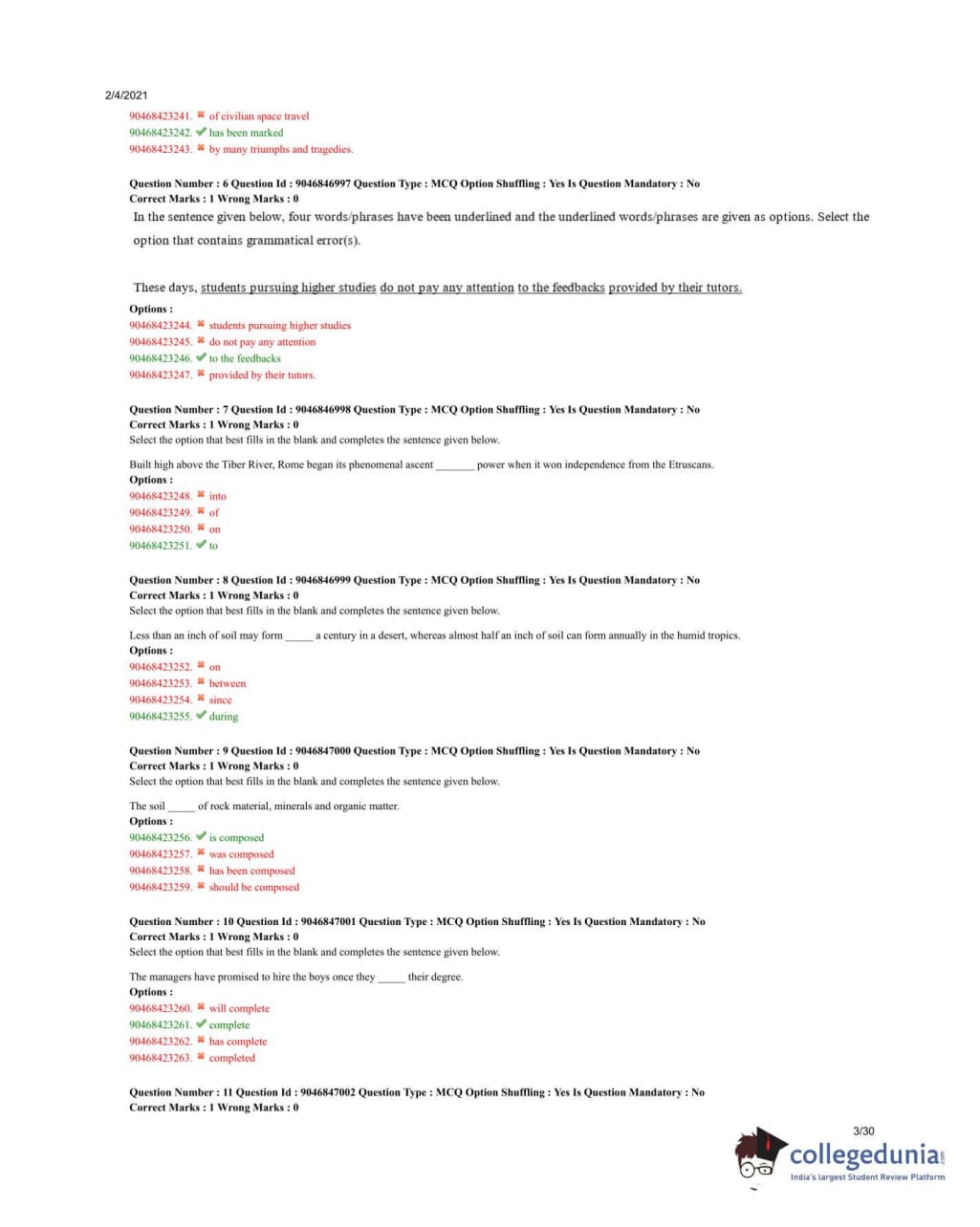 The error lies in the phrase "\underline{to the feedbacks". The word "feedback" is uncountable, so the plural form "feedbacks" is incorrect. The sentence should read, "students do not pay any attention to feedback provided by their tutors." Quick Tip: When dealing with uncountable nouns like "feedback," avoid using the plural form.