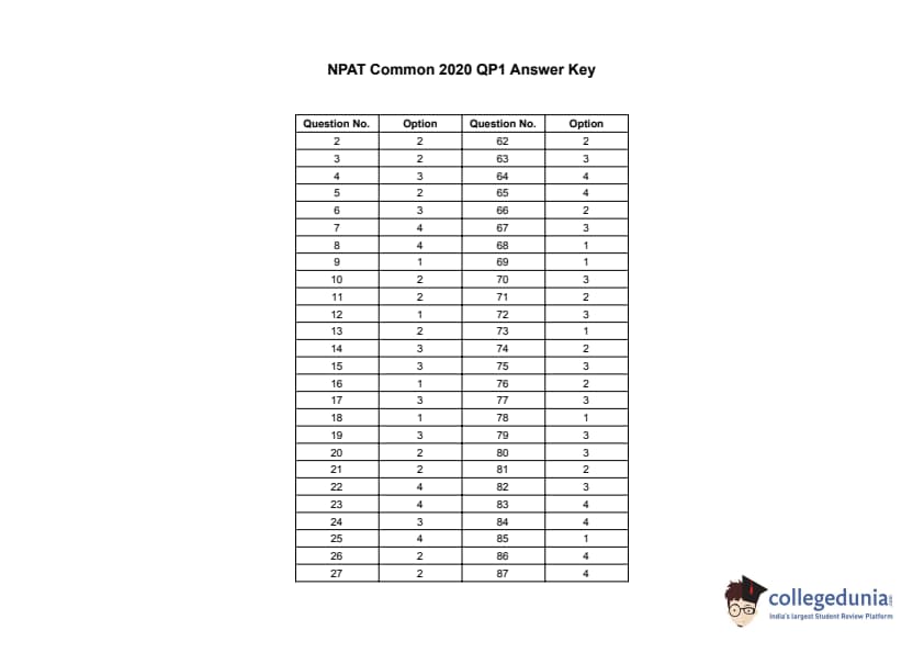 | NPAT 2020 Common Question Paper With Answer Key PDF | Download PDF | Check Solution |
