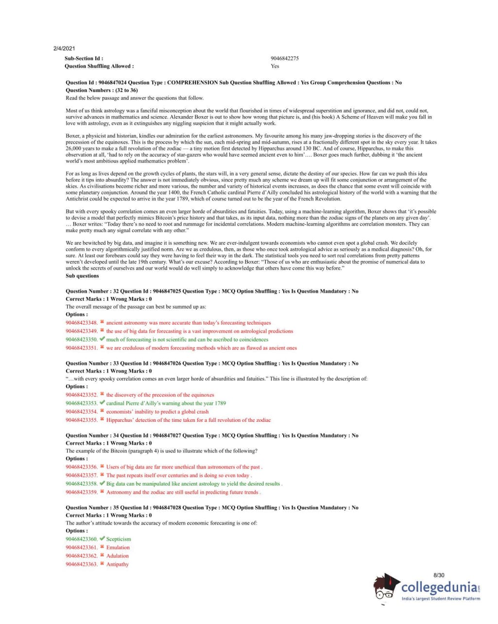 The passage draws a parallel between the use of big data today and the practices of ancient astrology, highlighting how both can be manipulated to support desired conclusions. Quick Tip: Look for examples in the passage that connect modern practices with historical precedents to understand the author’s message.
