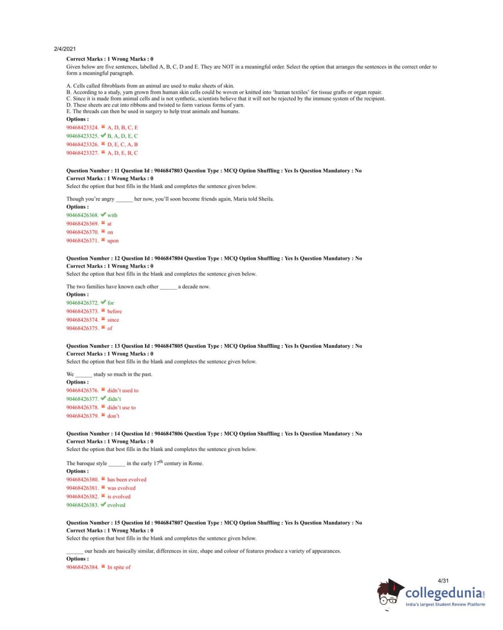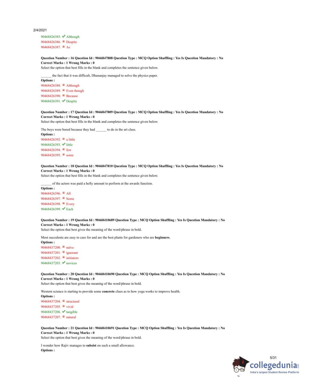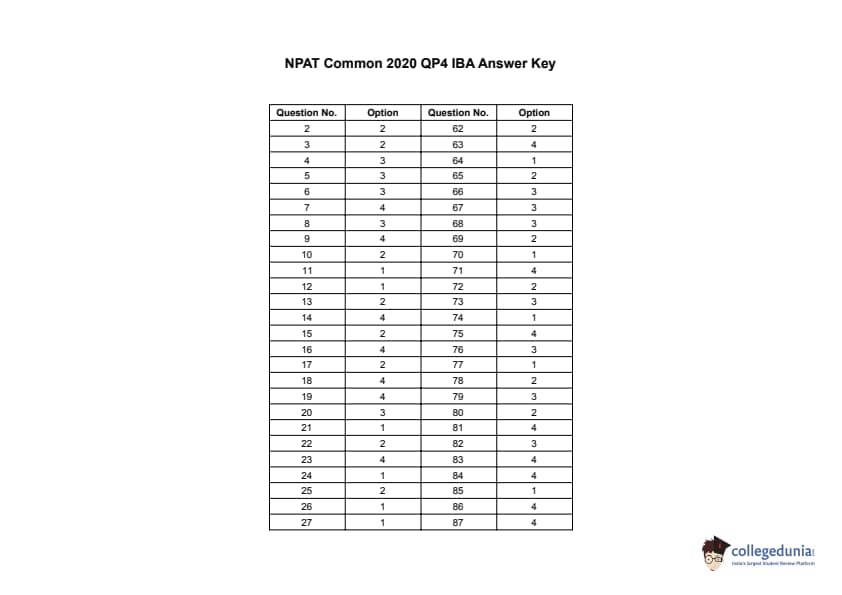 NPAT 2020 Common Question Paper with Answer Key PDFs (QP - 4 IBA)
