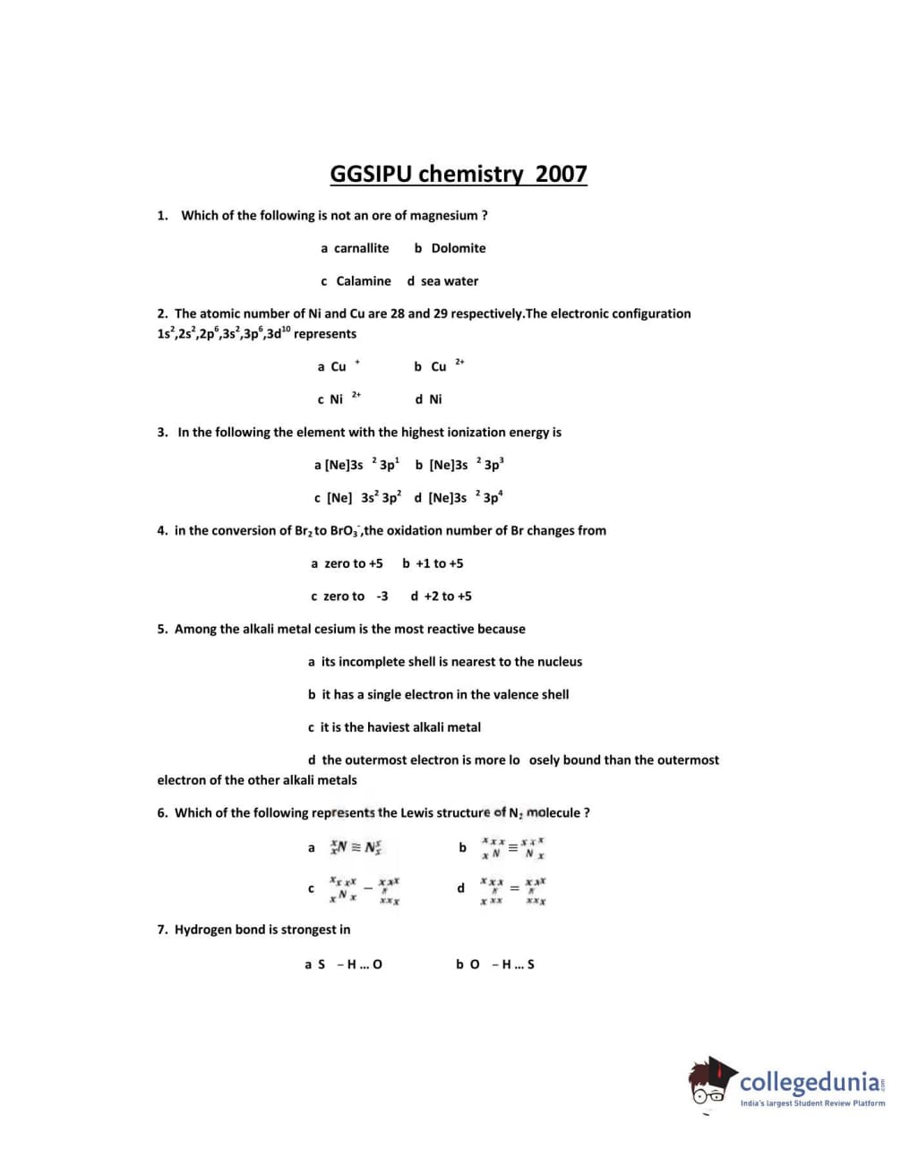 IPU CET 2007 Chemistry Question paper with answer key pdf is available for download. The exam was successfully organized by Guru Gobind Singh Indraprastha University. The question paper comprised a total of 50 questions.