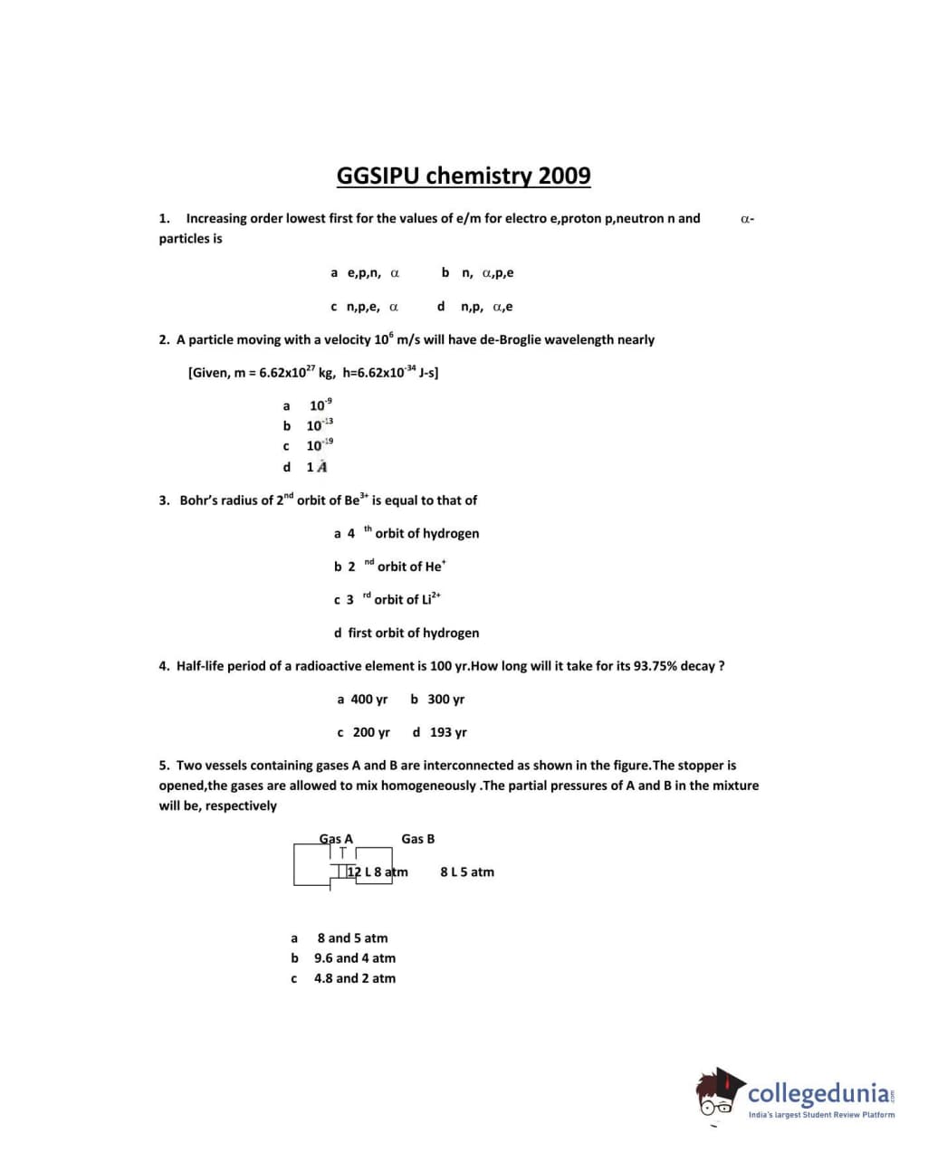 IPU CET 2009 Chemistry Question paper with answer key pdf conducted on May 30 is available for download. The exam was successfully organized by Guru Gobind Singh Indraprastha University. The question paper comprised a total of 50 questions.