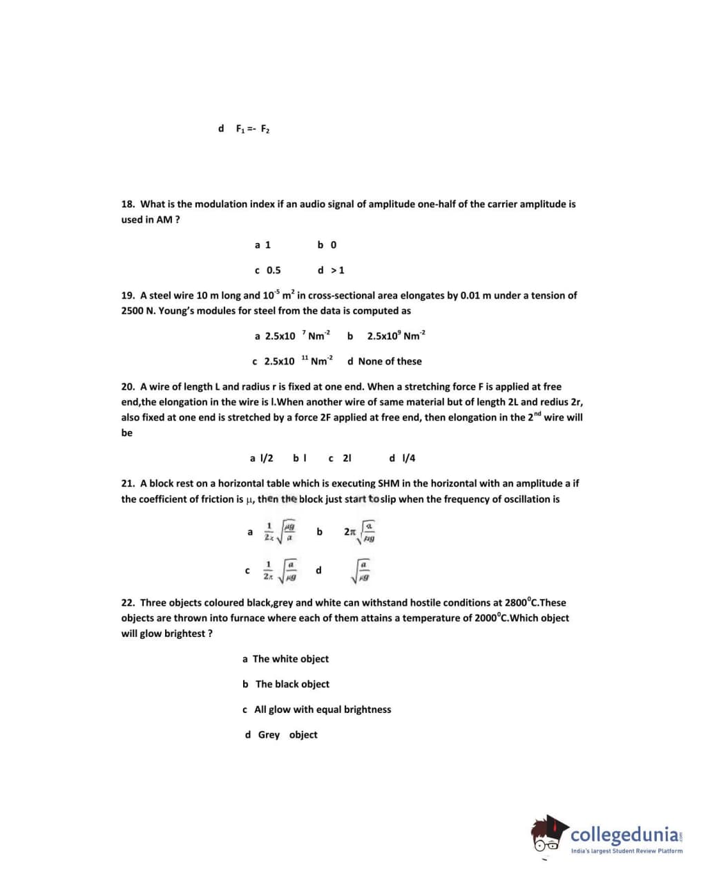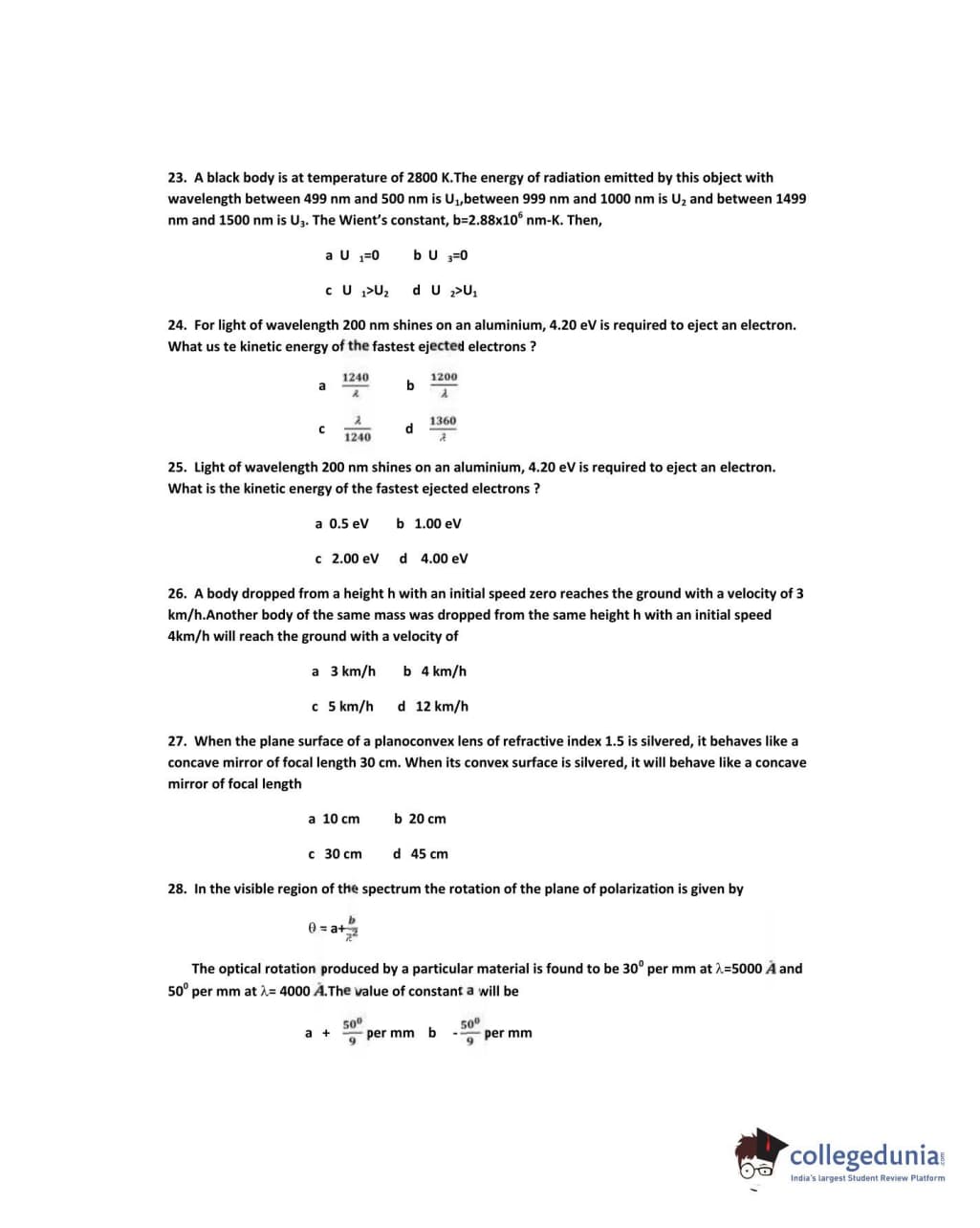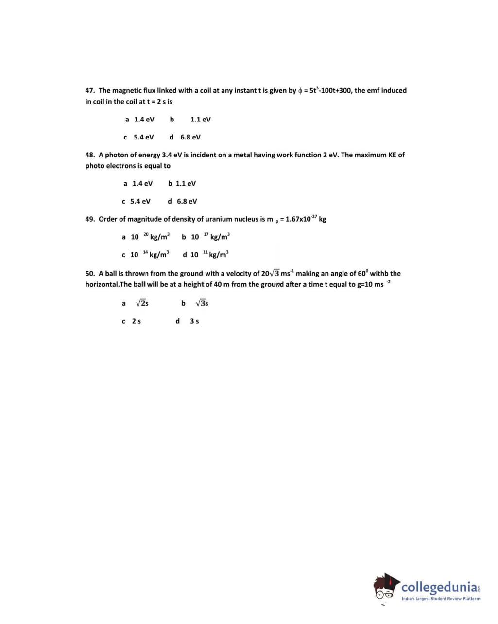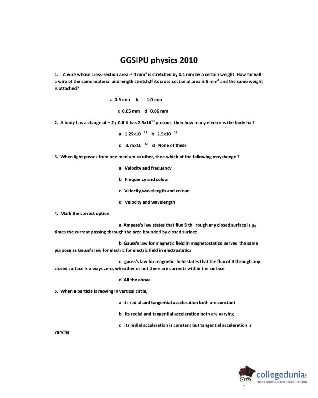 IPU CET 2010 Physics Question paper with answer key pdf conducted on June 5 is available for download. The exam was successfully organized by Guru Gobind Singh Indraprastha University. The question paper comprised a total of 50 questions.
