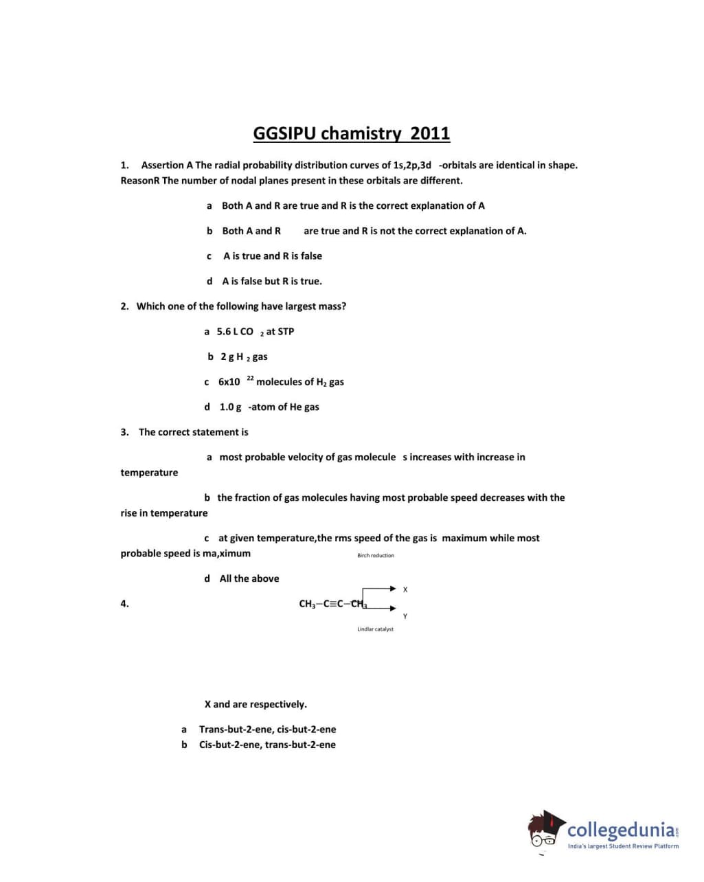 IPU CET 2011 Chemistry Question paper with answer key pdf conducted on May 23 is available for download. The exam was successfully organized by Guru Gobind Singh Indraprastha University. The question paper comprised a total of 50 questions.