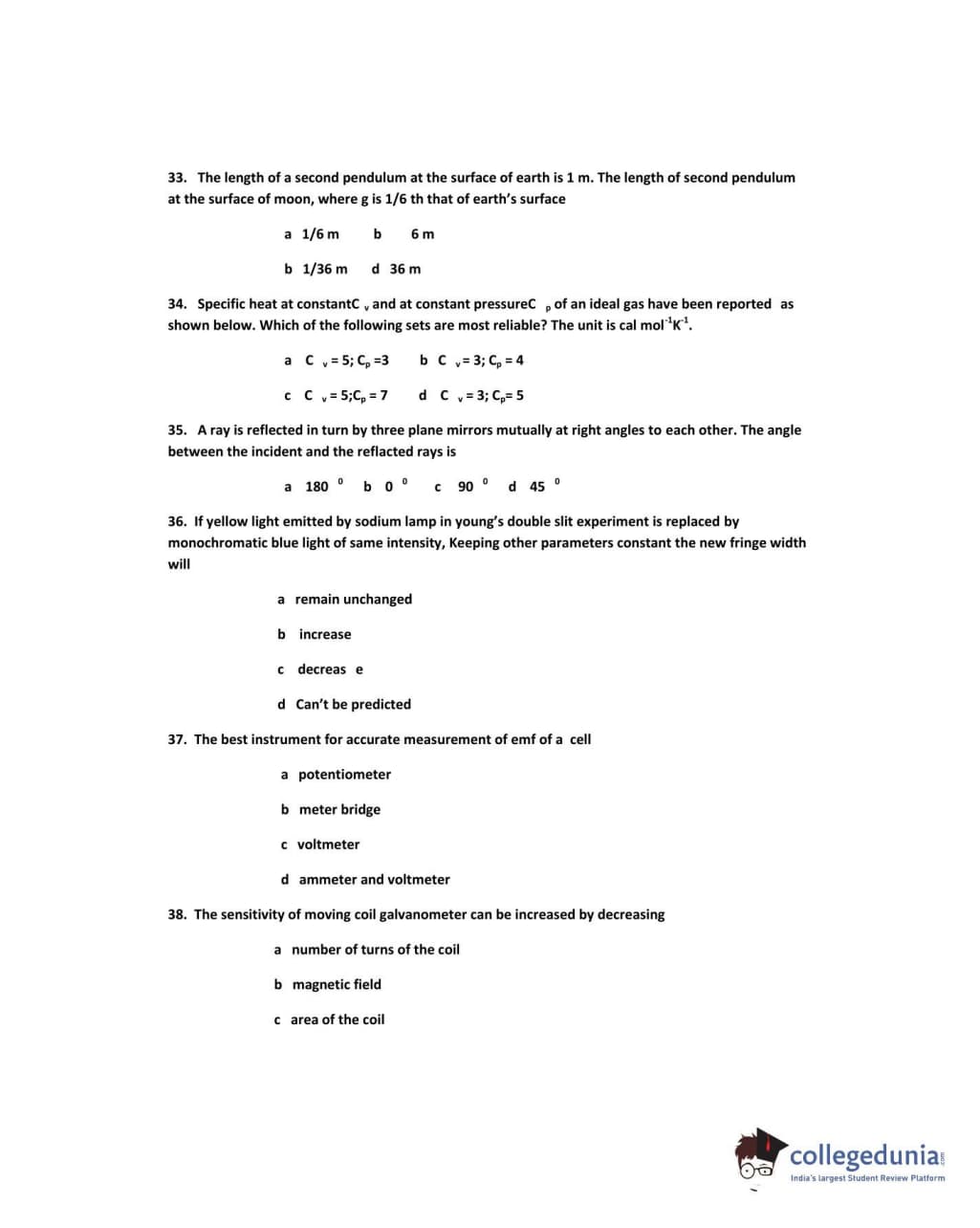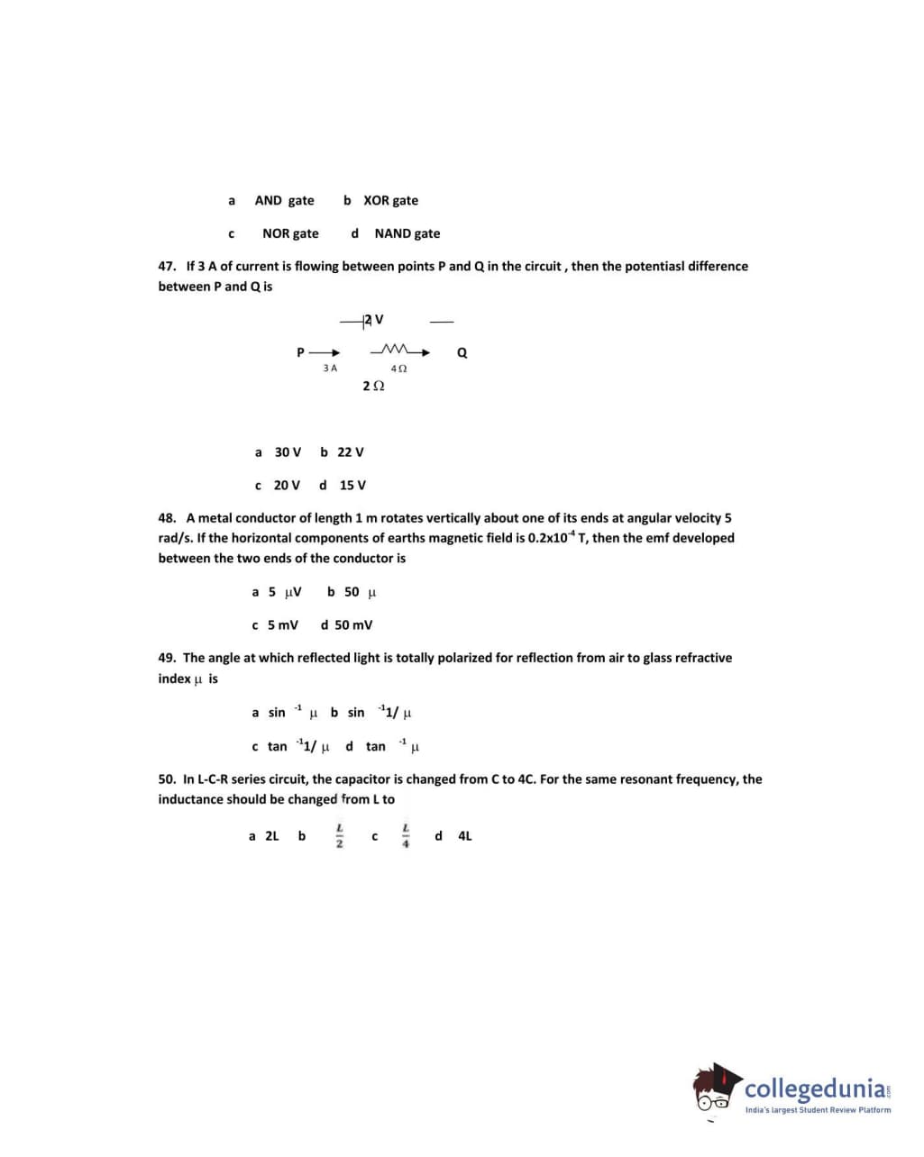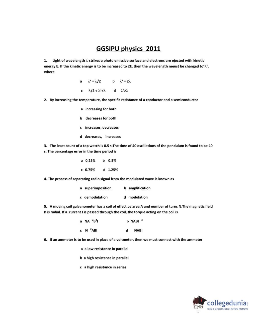 IPU CET 2011 Physics Question paper with answer key pdf conducted on May 23 is available for download. The exam was successfully organized by Guru Gobind Singh Indraprastha University. The question paper comprised a total of 50 questions.