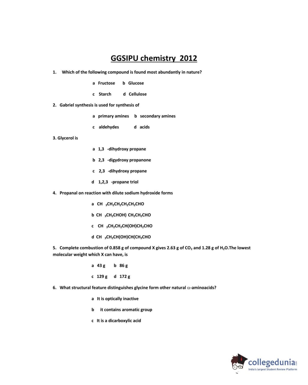 IPU CET 2012 Chemistry Question paper with answer key pdf conducted on June 6 is available for download. The exam was successfully organized by Guru Gobind Singh Indraprastha University. The question paper comprised a total of 50 questions.
