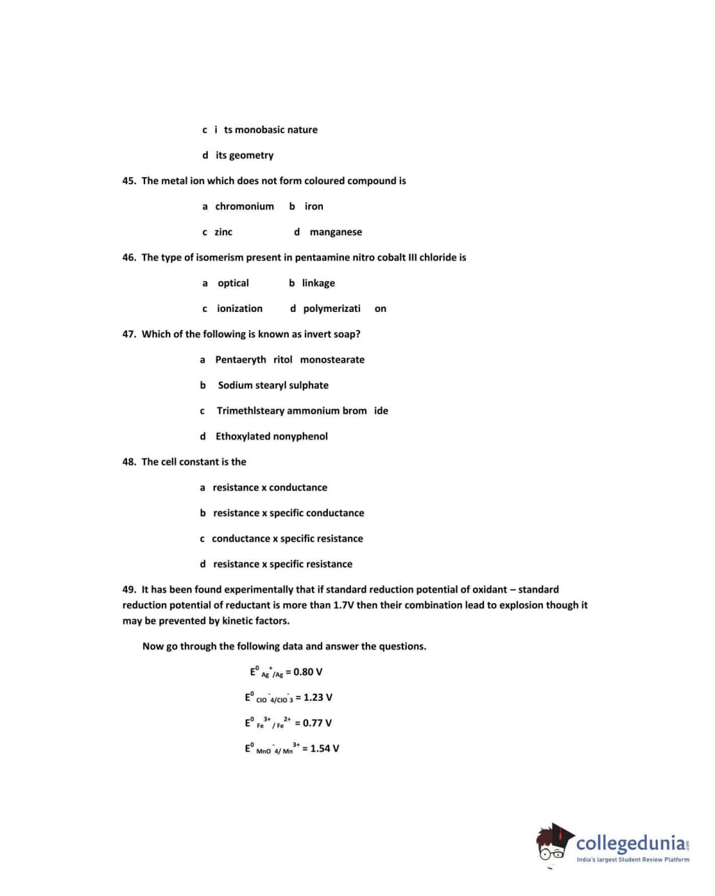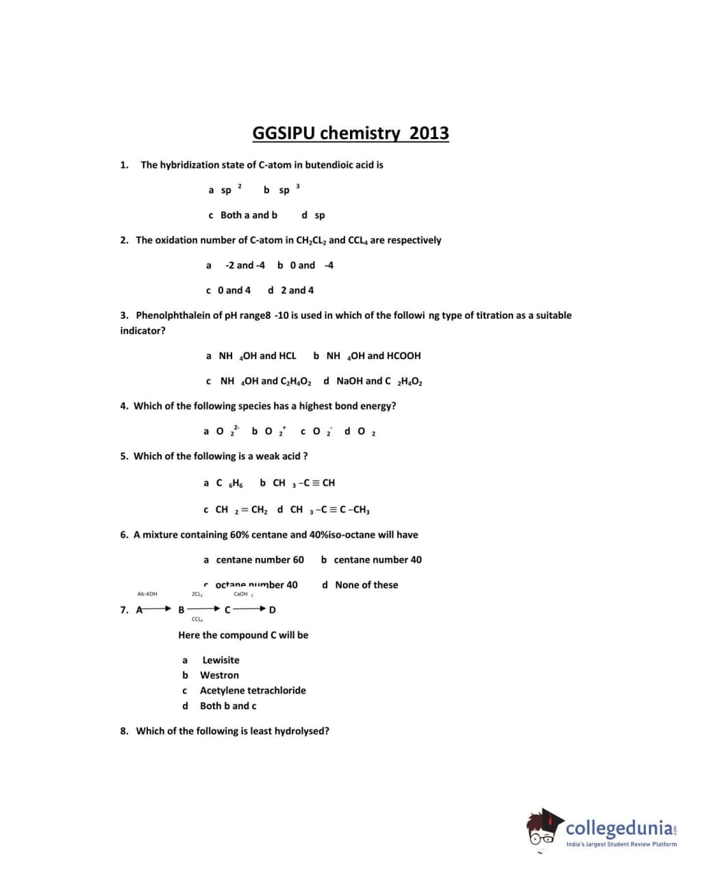 IPU CET 2013 Chemistry Question paper with answer key pdf conducted on May 19 is available for download. The exam was successfully organized by Guru Gobind Singh Indraprastha University. The question paper comprised a total of 50 questions.