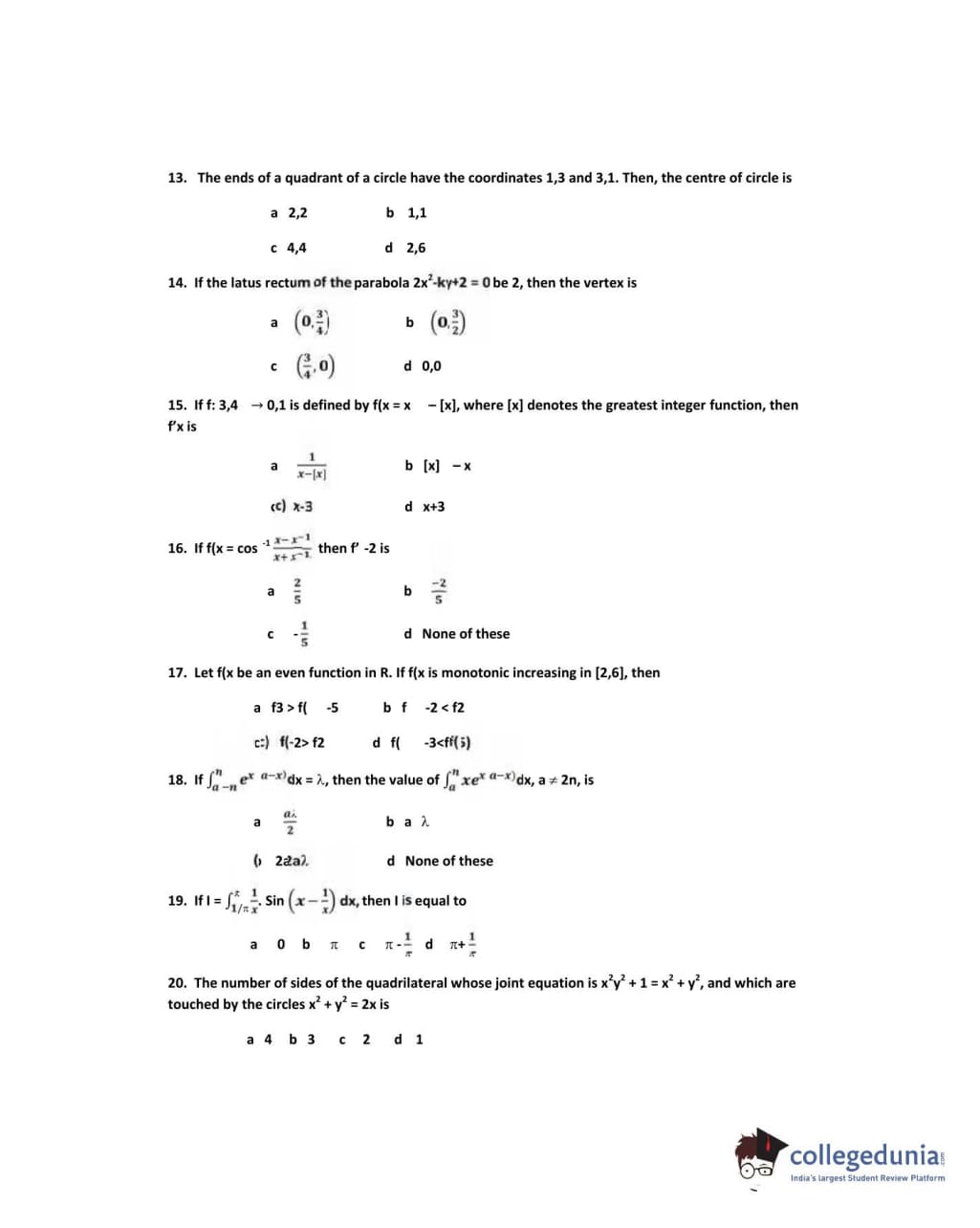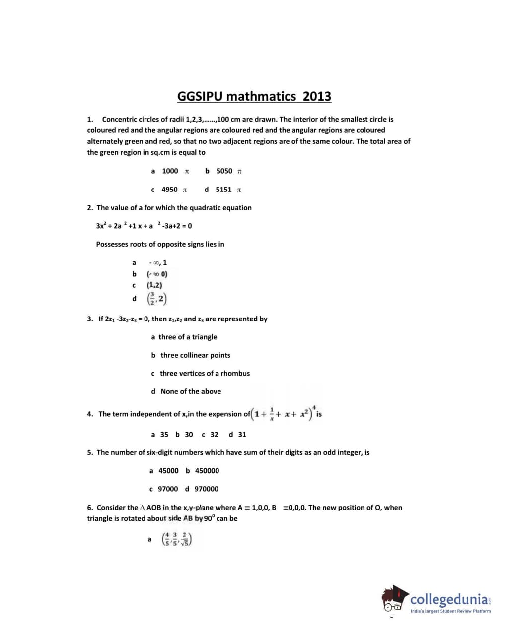 IPU CET 2013 Mathematics Question paper with answer key pdf conducted on May 19 is available for download. The exam was successfully organized by Guru Gobind Singh Indraprastha University. The question paper comprised a total of 50 questions.