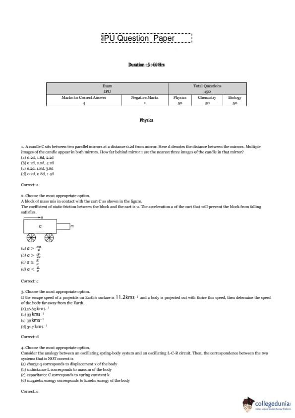 The IPU CET PCB exam is an entrance test for admission to various programs at Guru Gobind Singh Indraprastha University for students from the Physics, Chemistry, and Biology (PCB) stream. It consists of 100 questions covering subjects such as Physics, Chemistry, Biology, and General Awareness. Students can download here the IPU CET question papers along with solutions PDF.