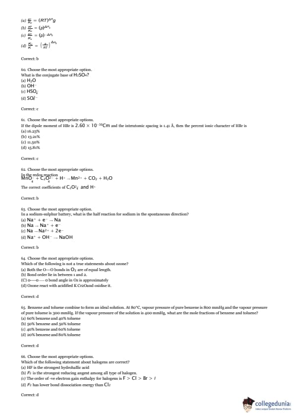 Choose the most appropriate options.