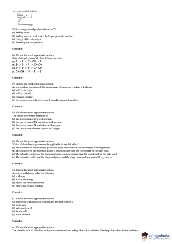 Curve X on the graph below shows the volume of oxygen formed during the catalytic decomposition of a 1.0 mol dm\(^{-3}\) solution of hydrogen peroxide.
