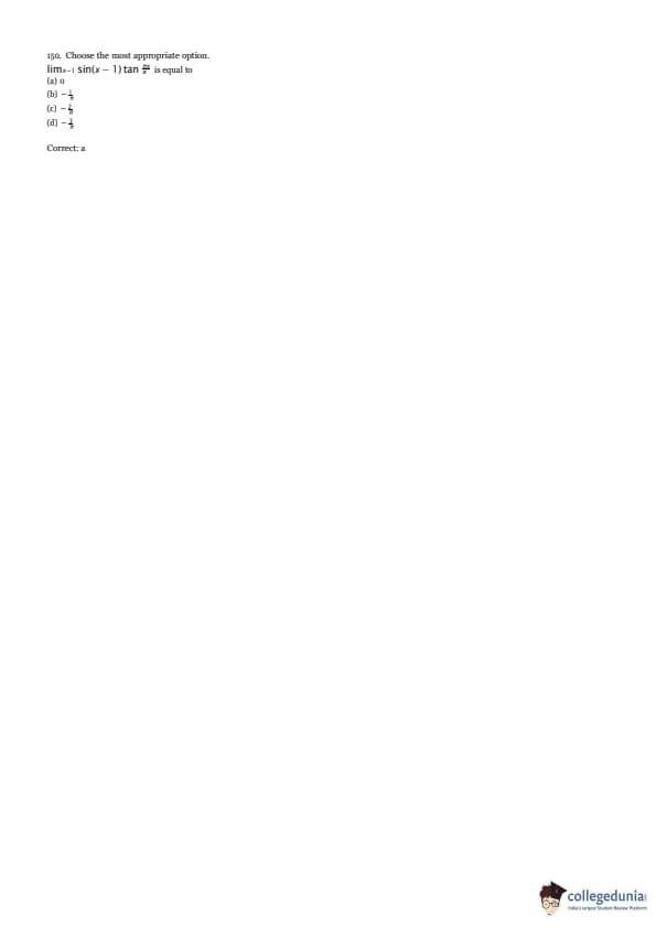 Choose the most appropriate option. \[ \lim_{x \to 1} \sin(x - 1) \cdot \tan\left( \frac{\pi}{x} \right) \]