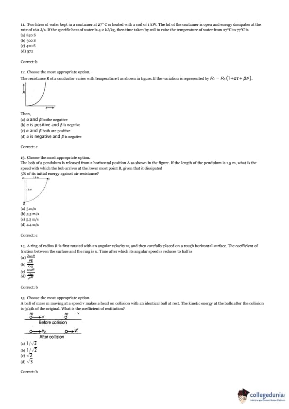 Two litres of water kept in a container at \( 27^\circ C \) is heated with a coil of 1 kW. The lid of the container is open and energy dissipates at the rate of 160 J/s. If the specific heat of water is 4.2 kJ/kg, then the time taken by coil to raise the temperature of water from \( 27^\circ C \) to \( 77^\circ C \) is: