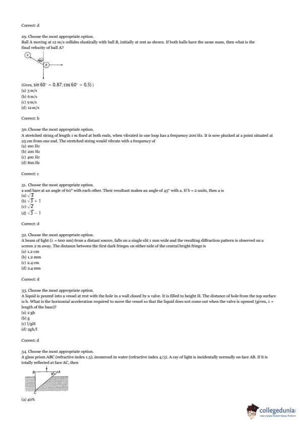 Ball A moving at 12 m/s collides elastically with ball B, initially at rest as shown. If both balls have the same mass, then what is the final velocity of ball A?
