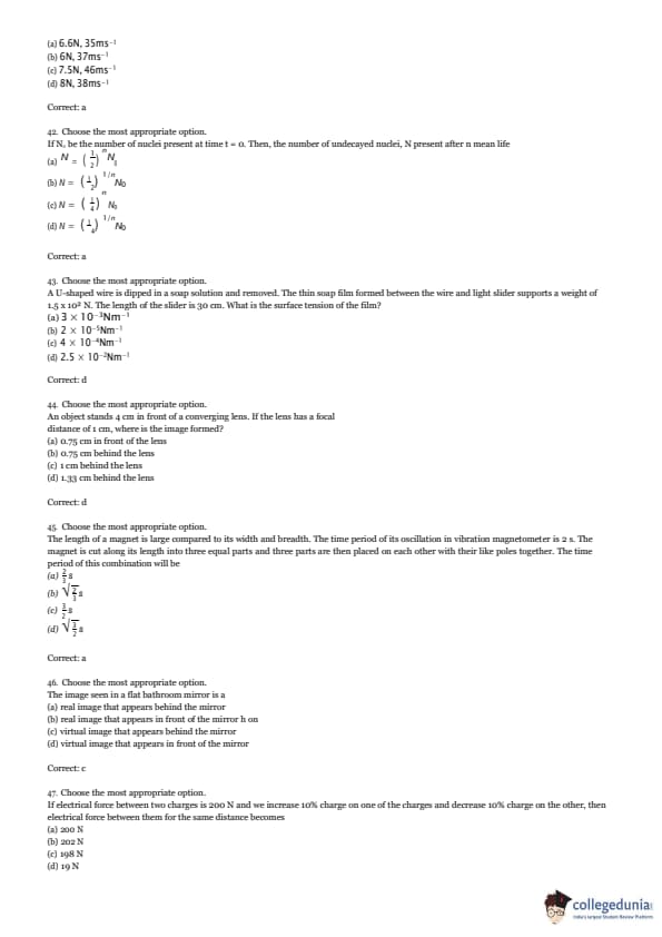 If \( N_0 \) be the number of nuclei present at time \( t = 0 \), then the number of undecayed nuclei, \( N \), present after \( n \) mean life is