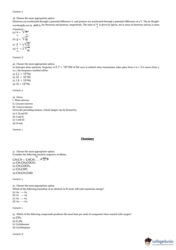 Electrons are accelerated through a potential difference \( V_e \), and protons are accelerated through a potential difference of 4 V. The de-Broglie wavelengths are \( \lambda_e \) and \( \lambda_p \) for electrons and protons, respectively. The ratio of \( \frac{\lambda_e}{\lambda_p} \) is given by (given \( m_e \) is mass of electrons and \( m_p \) is mass of protons):