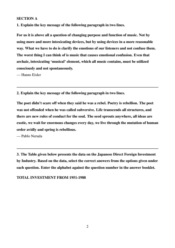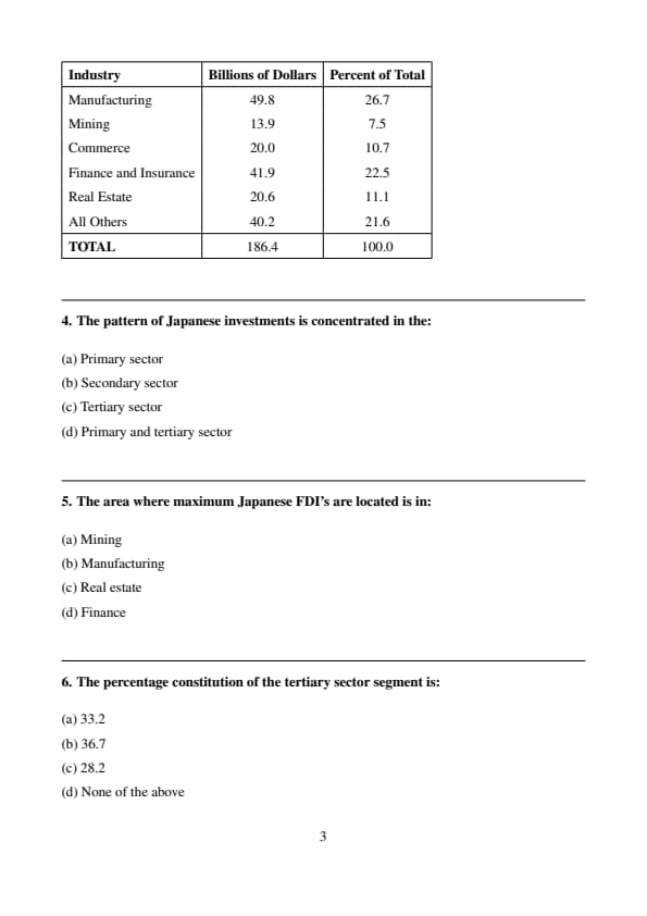 The Table given below presents the data on the Japanese Direct Foreign Investment by Industry. Based on the data, select the correct answers from the options given under each question. Enter the alphabet against the question number in the answer booklet.