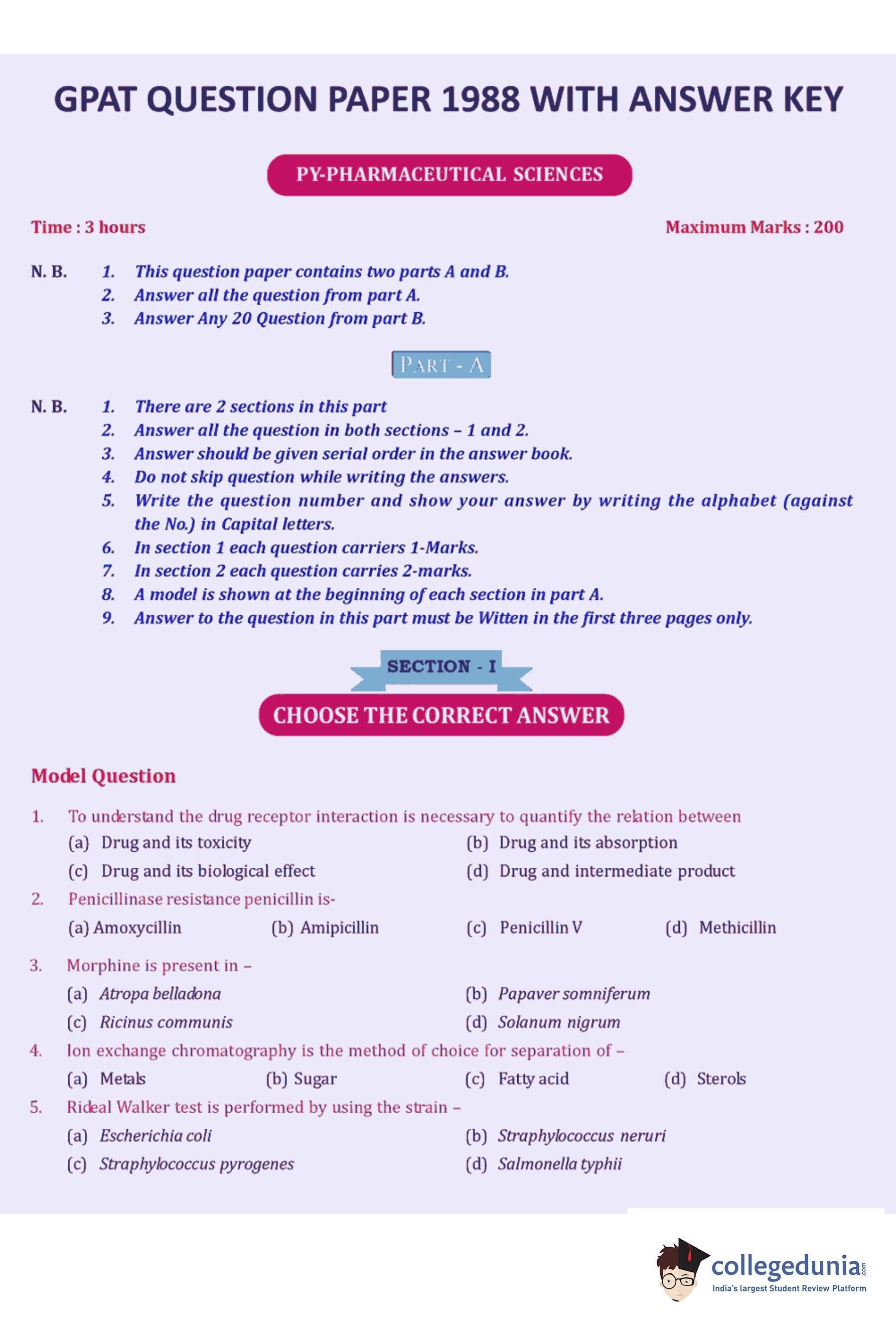 | GPAT 1988 Question Paper PDF | GPAT 1988 Answer Key PDF |
