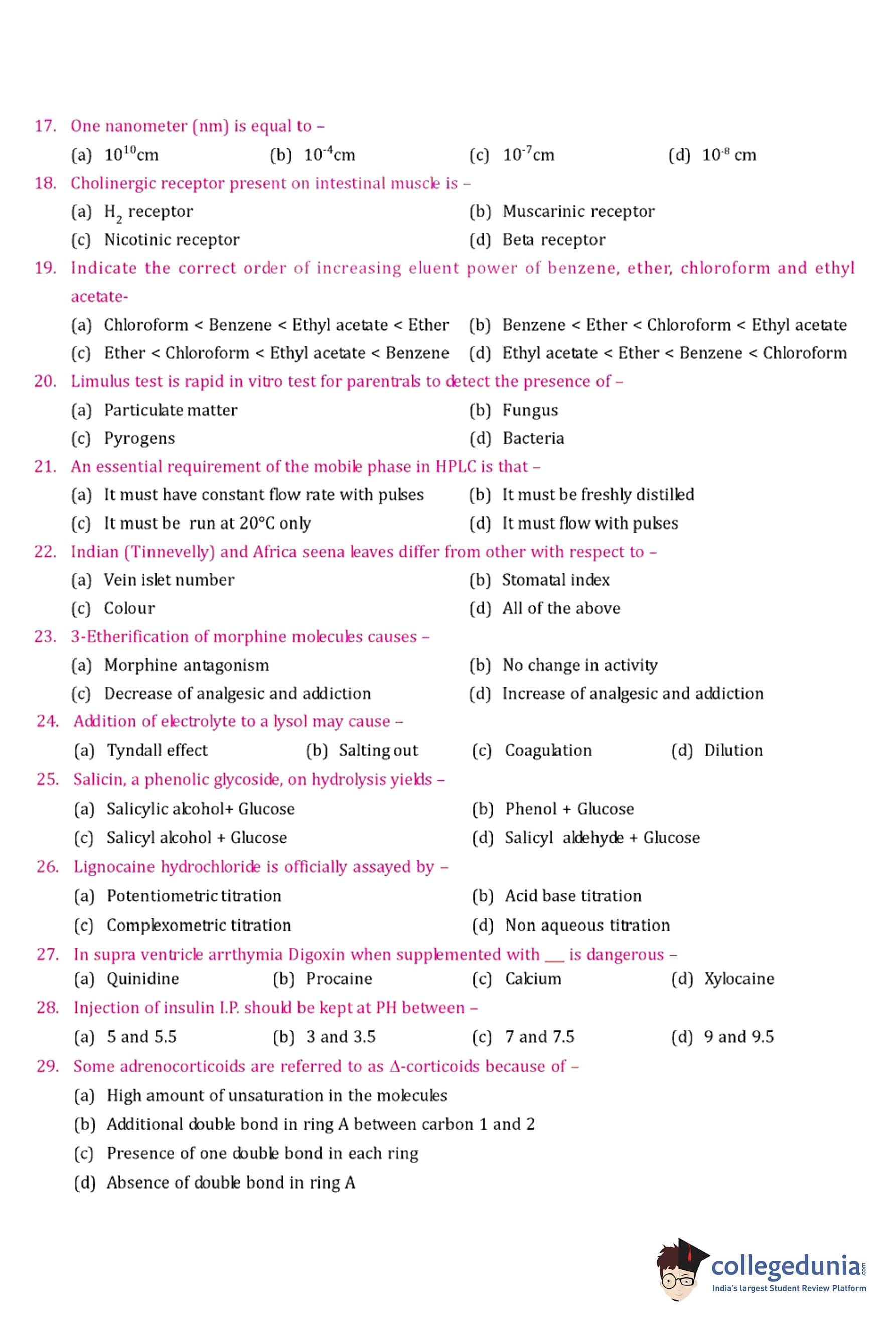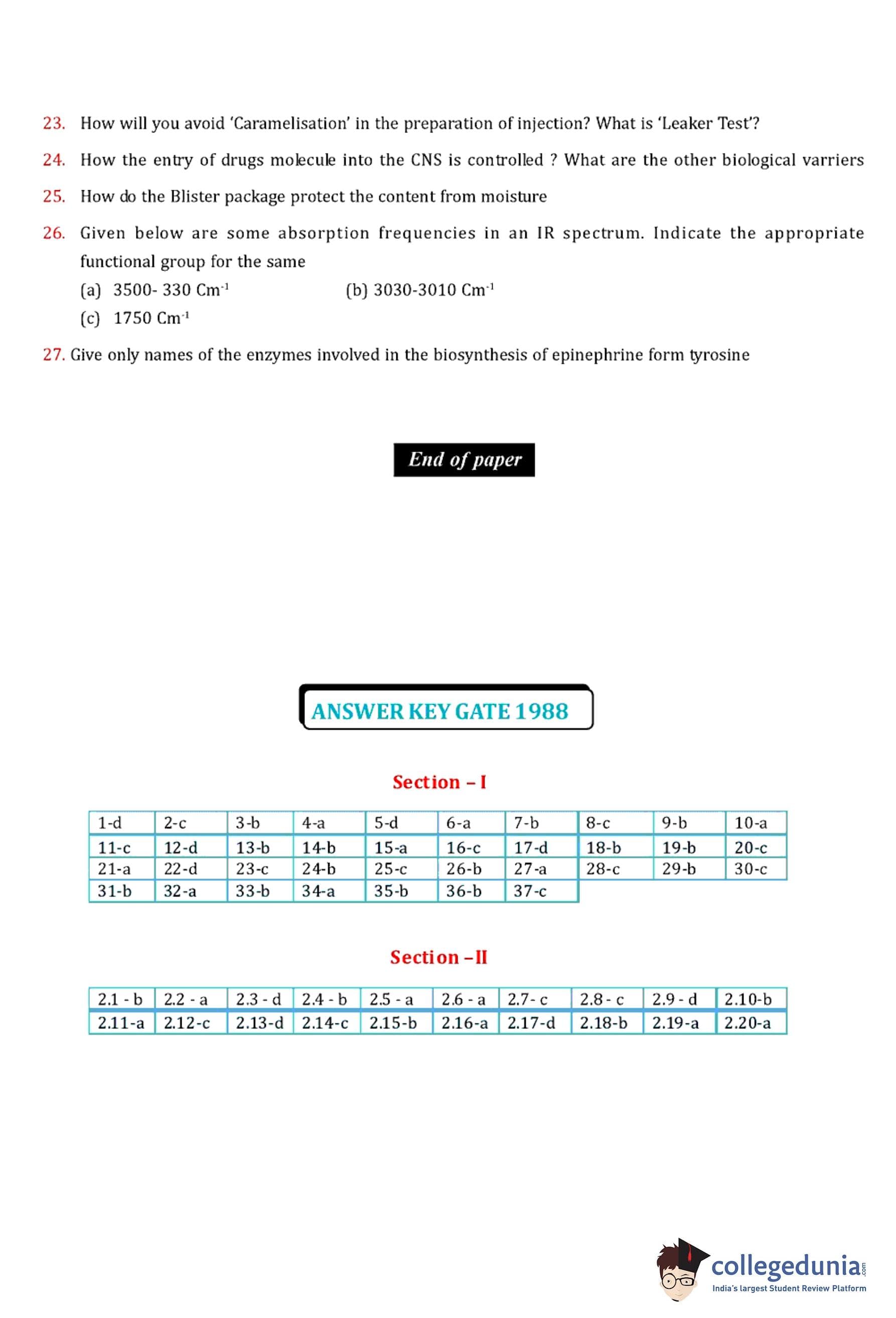 GPAT 1988 Question Paper with Answer Key pdf is available for download. The exam was conducted by All India Council for Technical Education (AICTE). The question paper comprised a total of 27 questions divided among 2 sections.