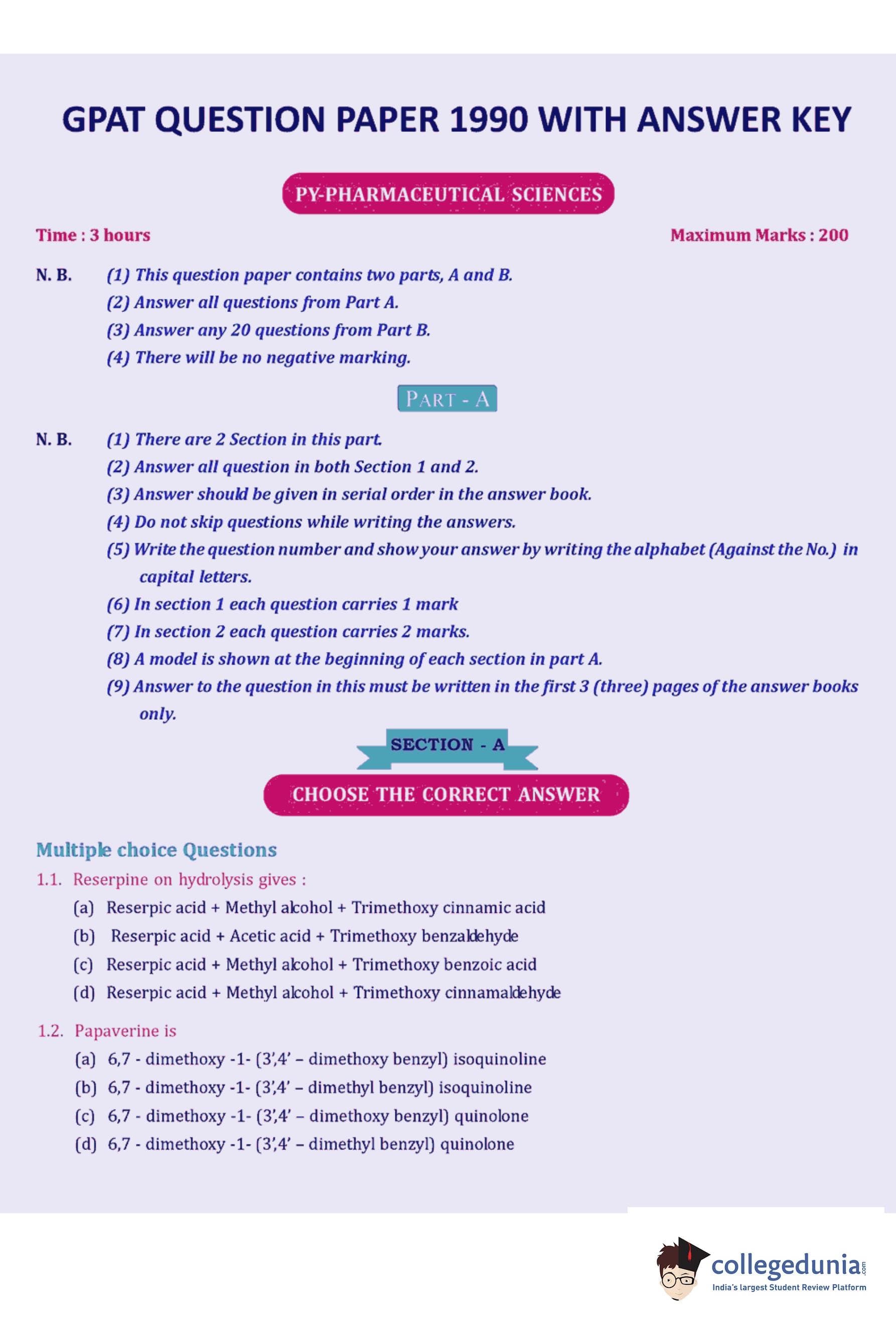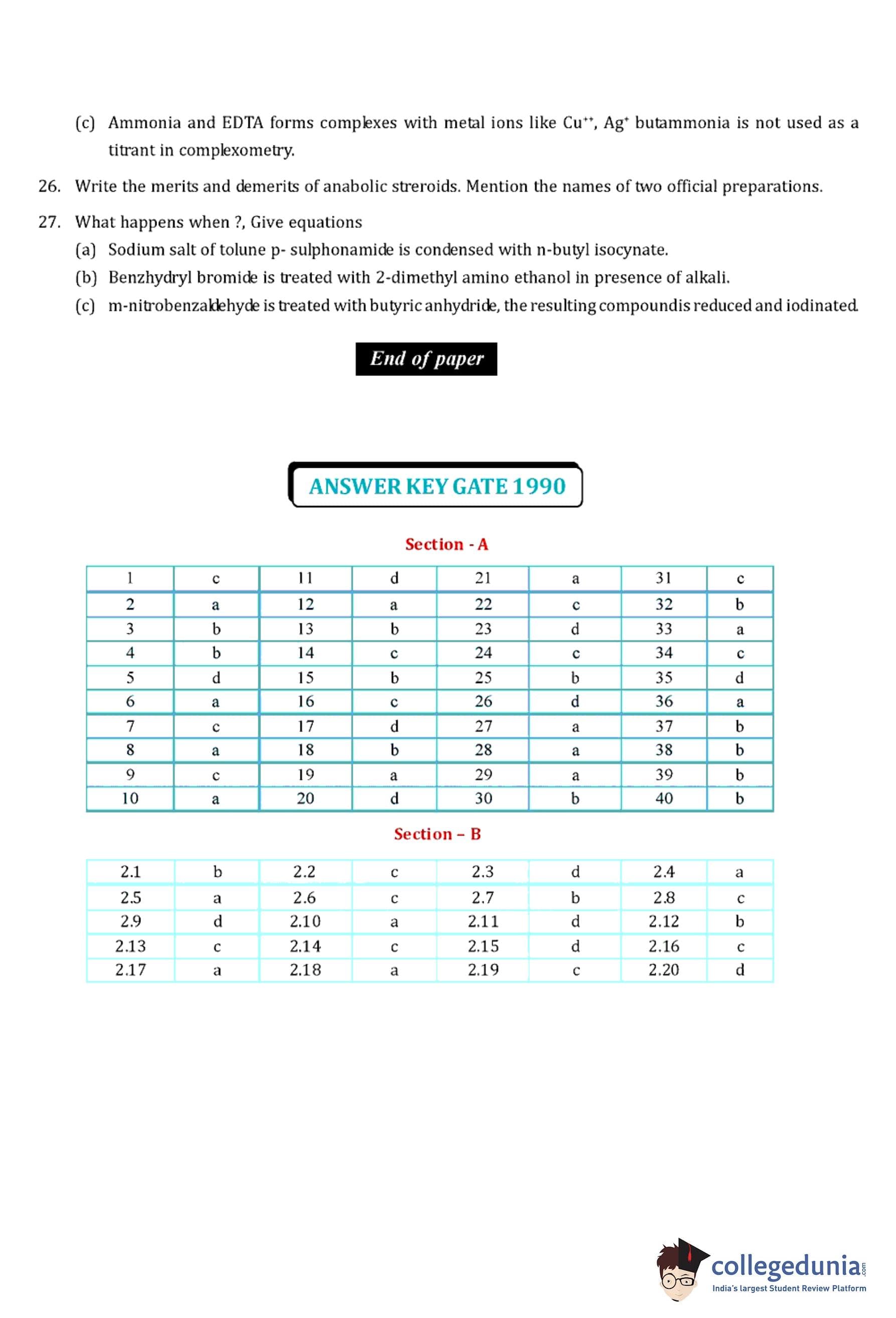 | GPAT 1990 Question Paper PDF | GPAT 1990 Answer Key PDF |