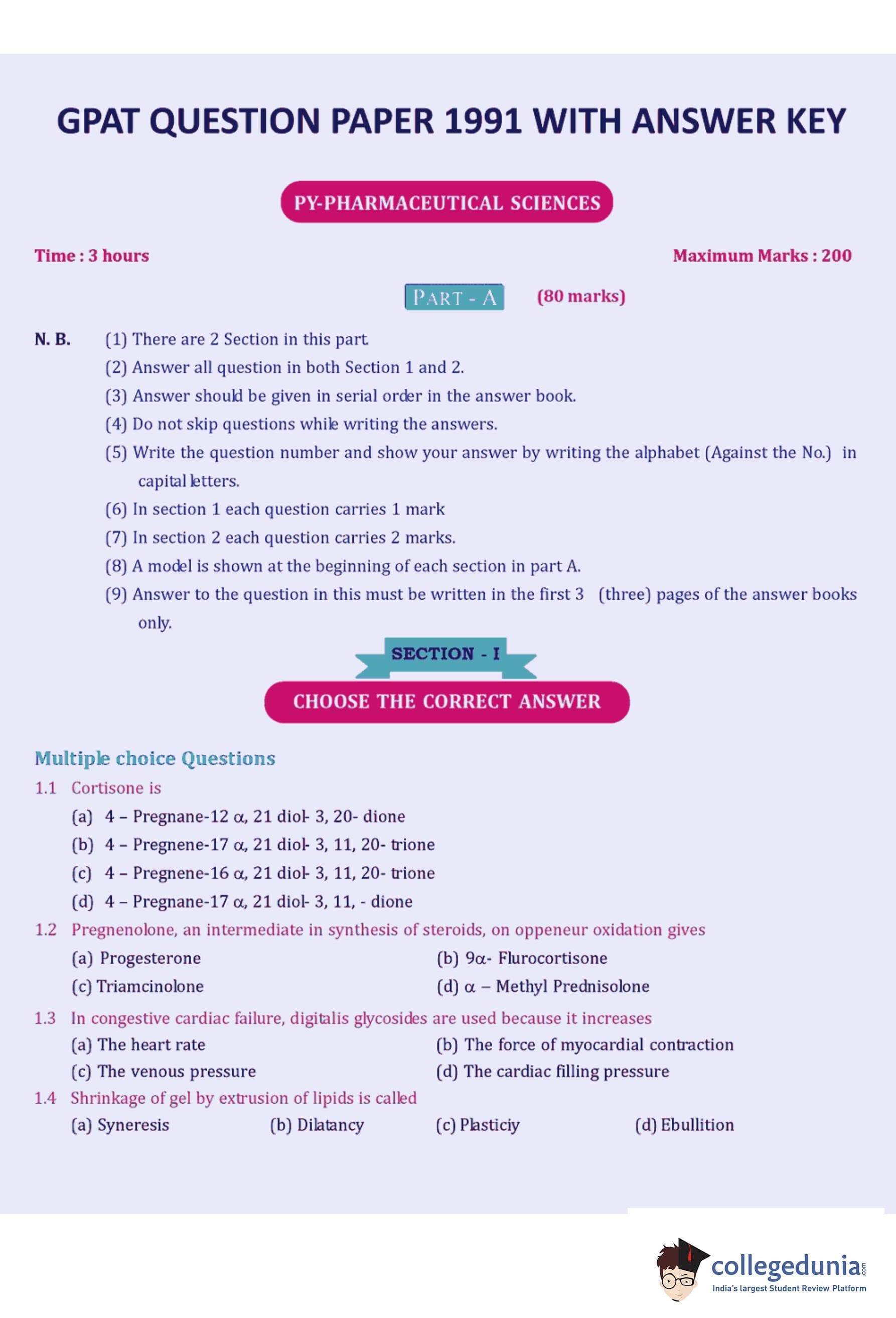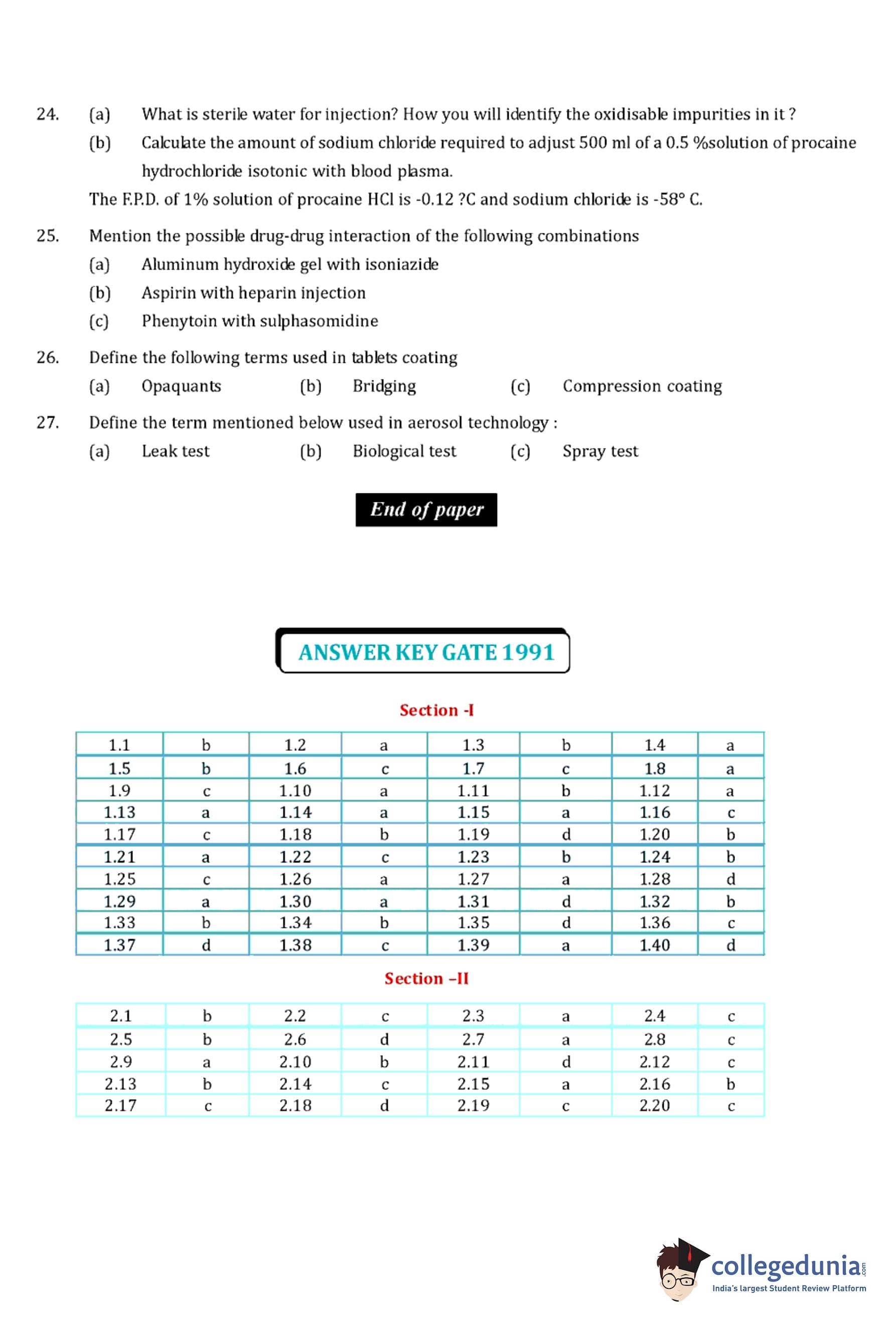 | GPAT 1991 Question Paper PDF | GPAT 1991 Answer Key PDF |
