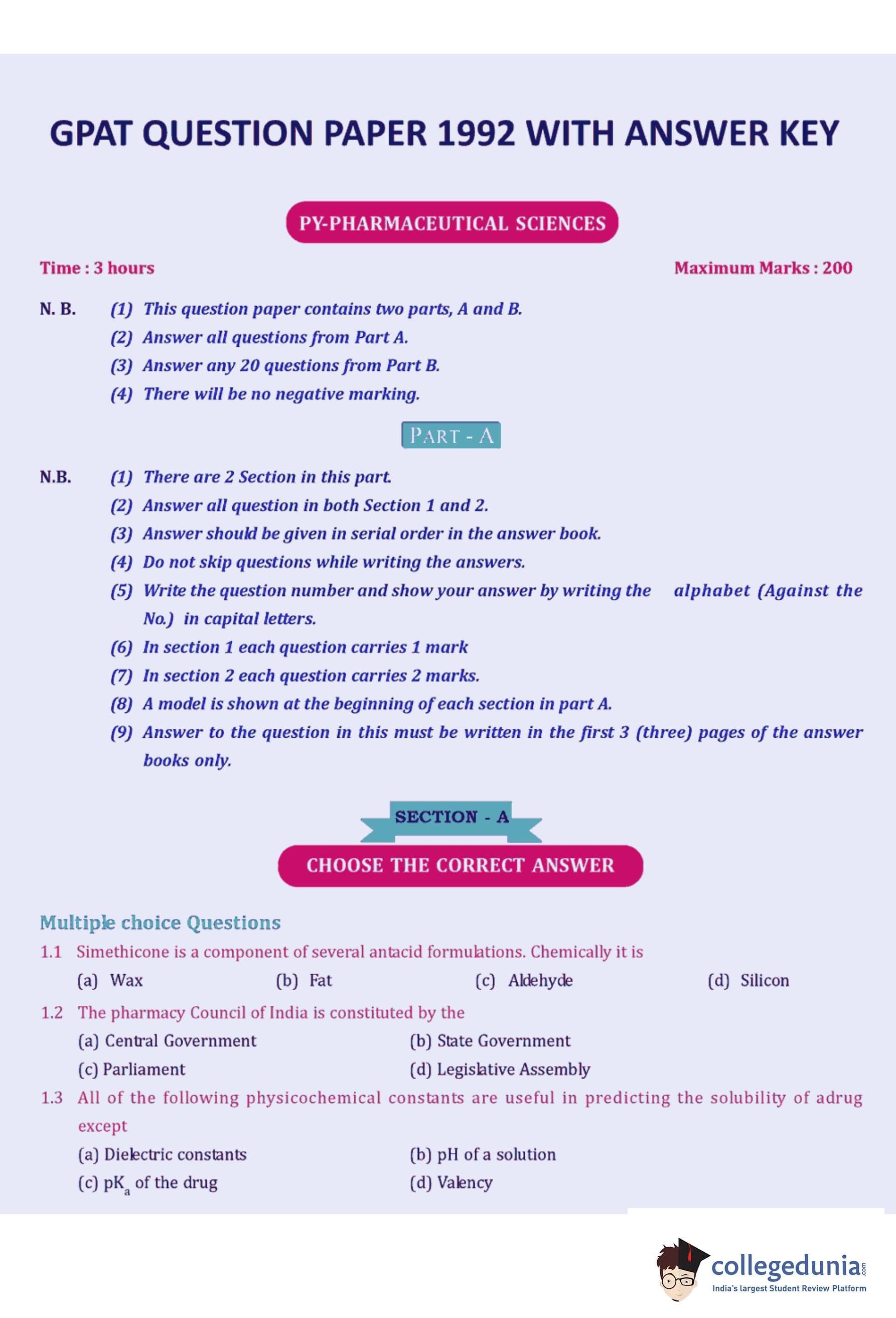 | GPAT 1992 Question Paper PDF | GPAT 1992 Answer Key PDF |
