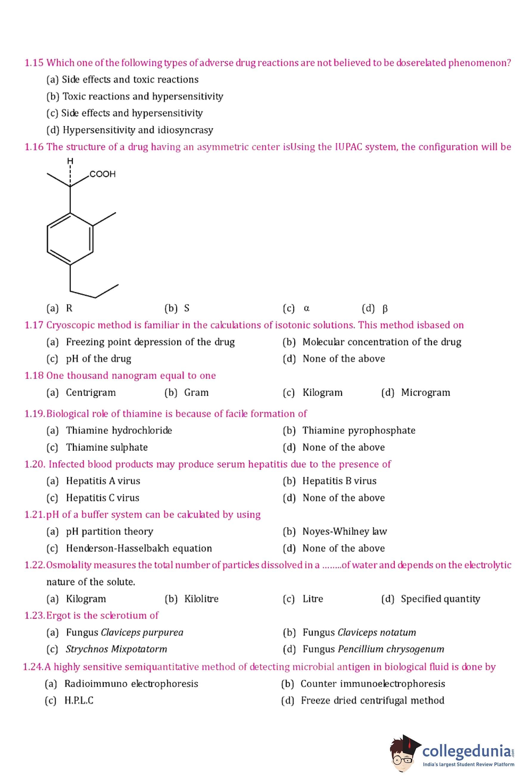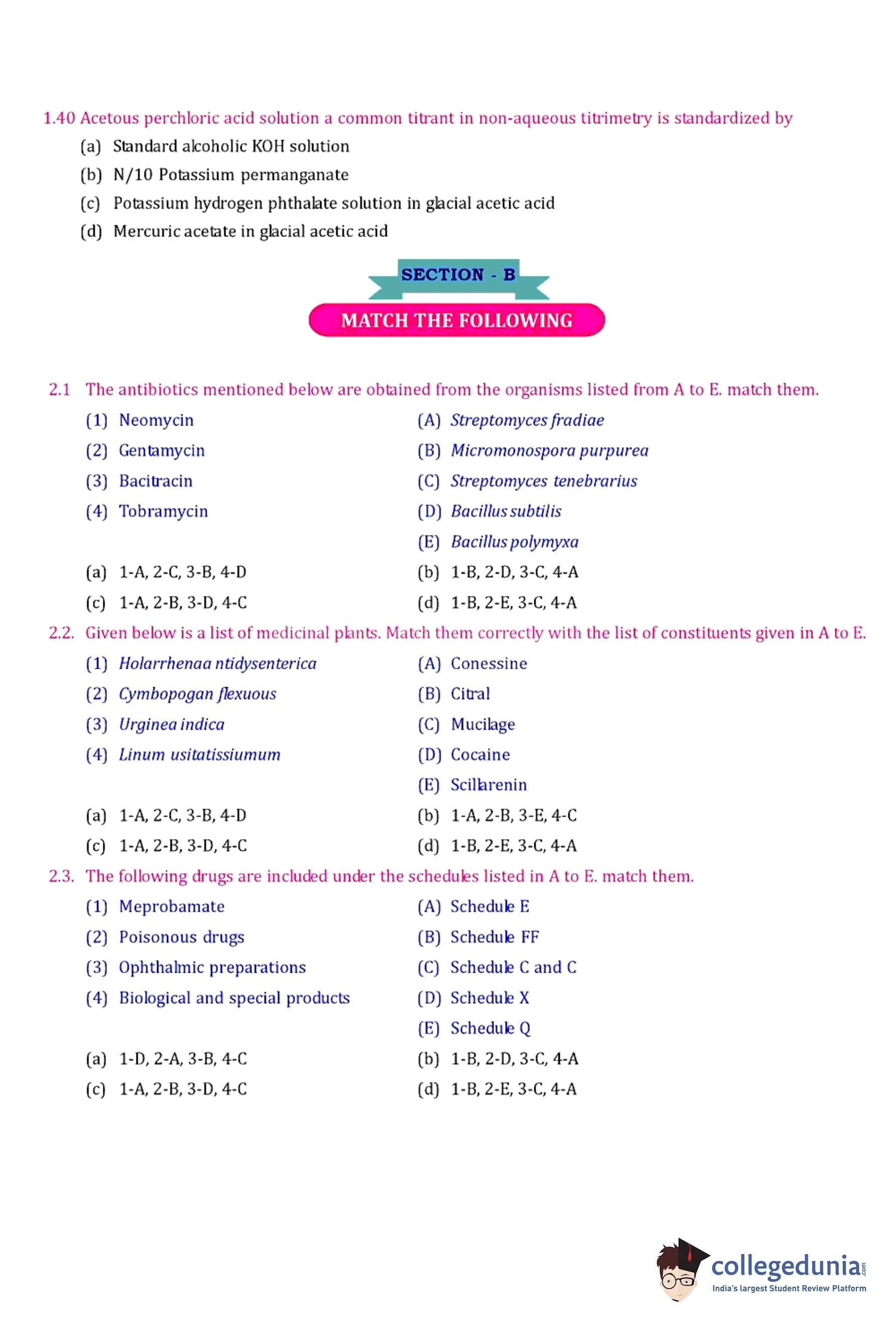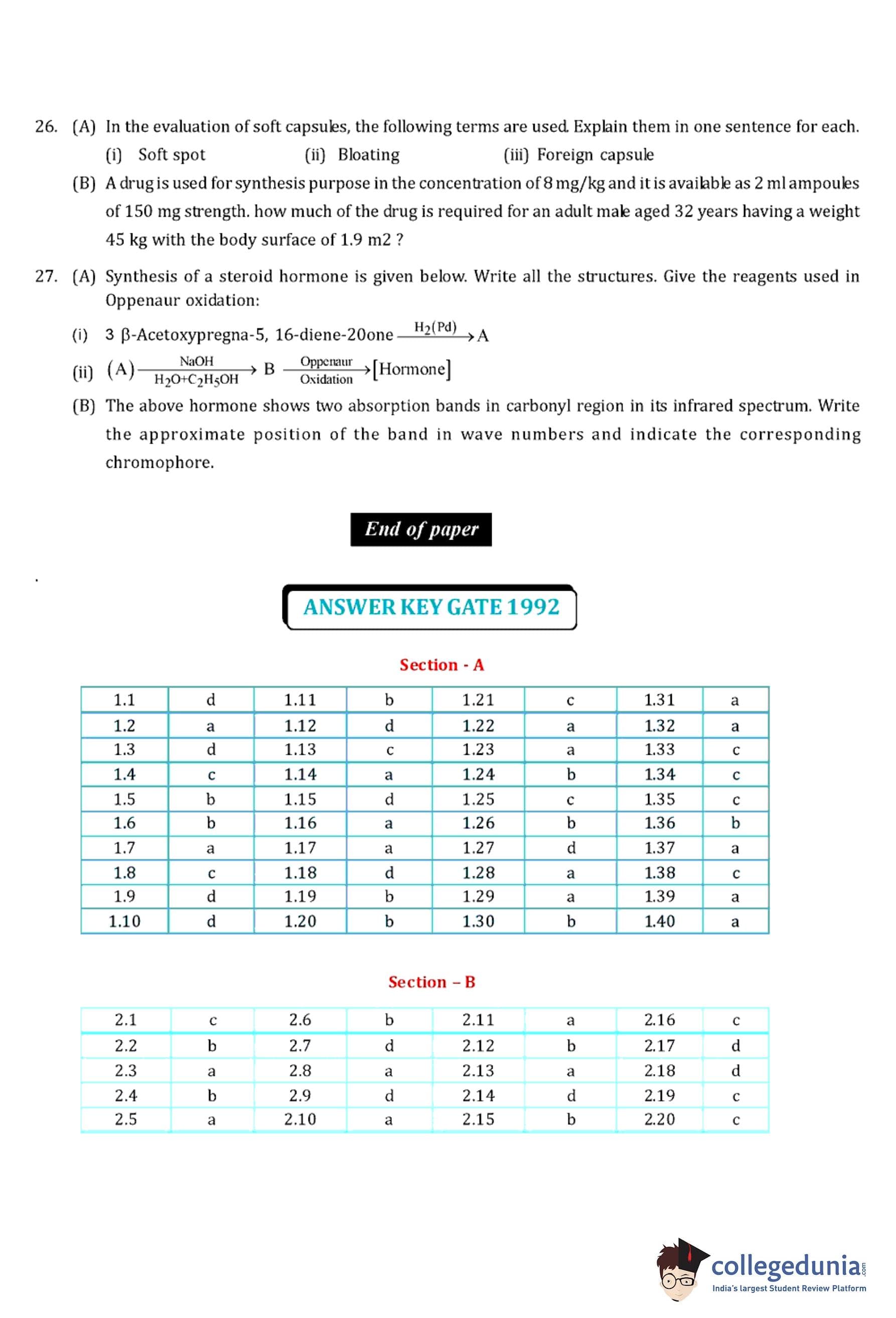 GPAT 1992 Question Paper with Answer Key pdf is available for download. The exam was conducted by All India Council for Technical Education (AICTE). The question paper comprised a total of 27 questions divided among 2 sections.