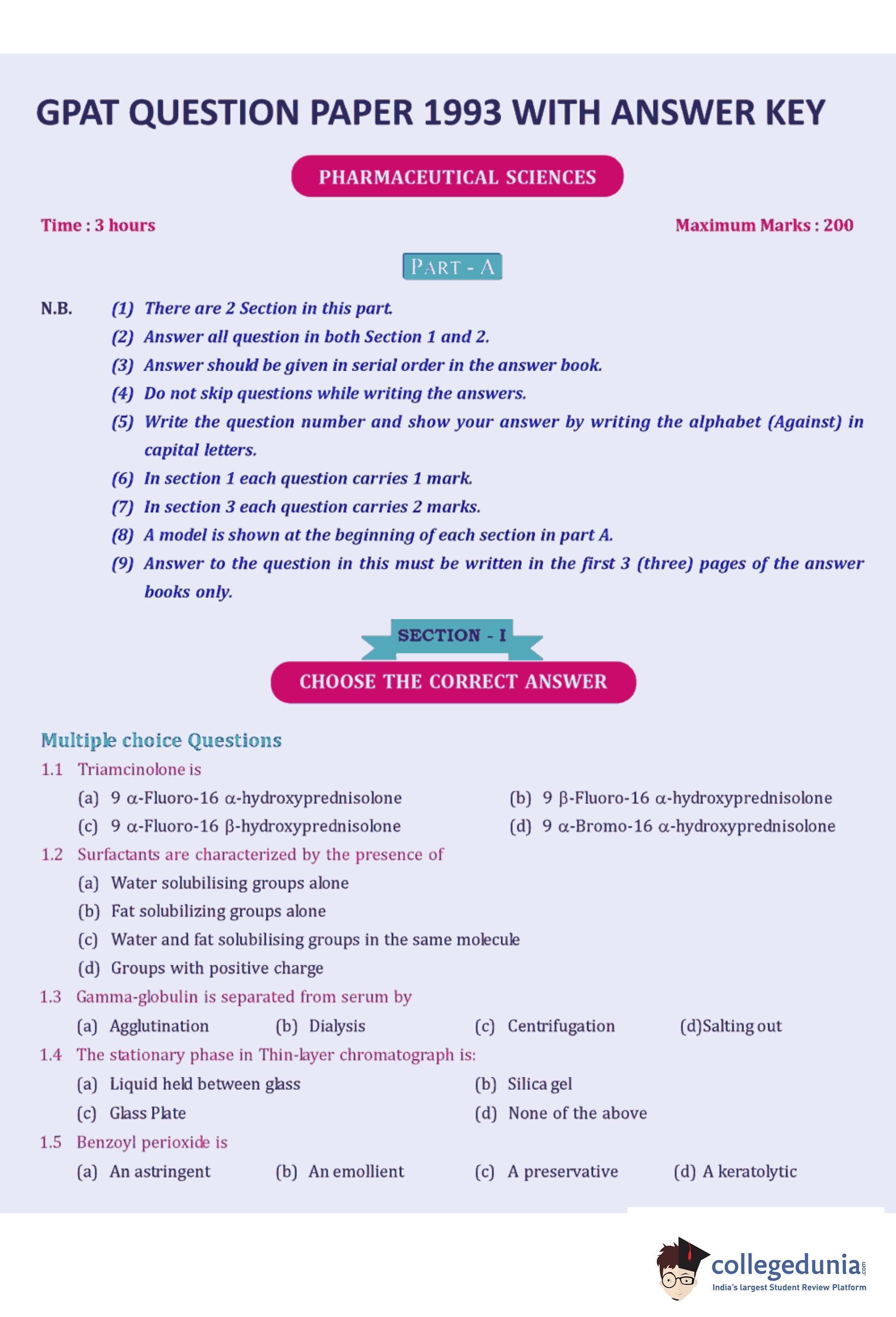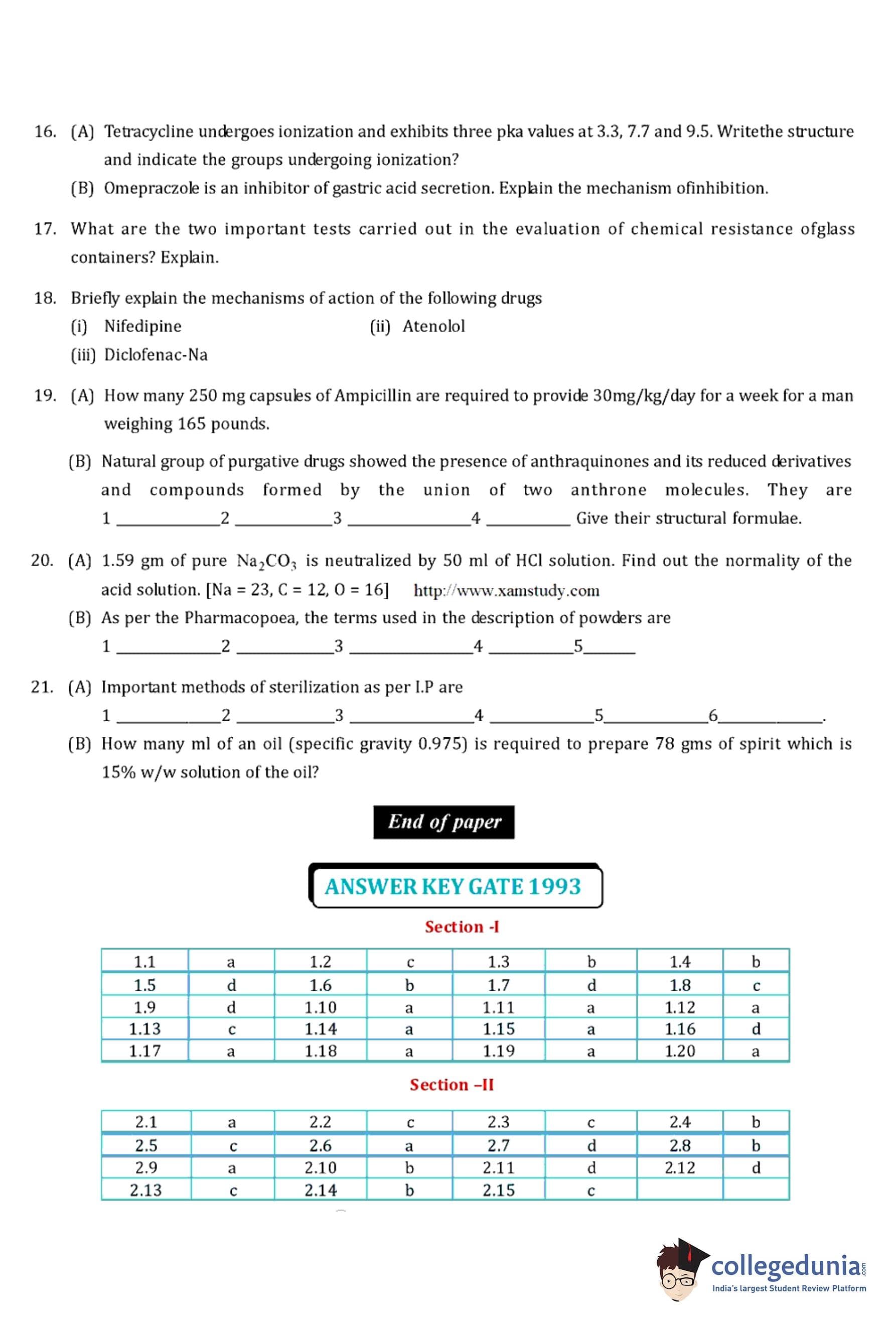 | GPAT 1993 Question Paper PDF | GPAT 1993 Answer Key PDF |