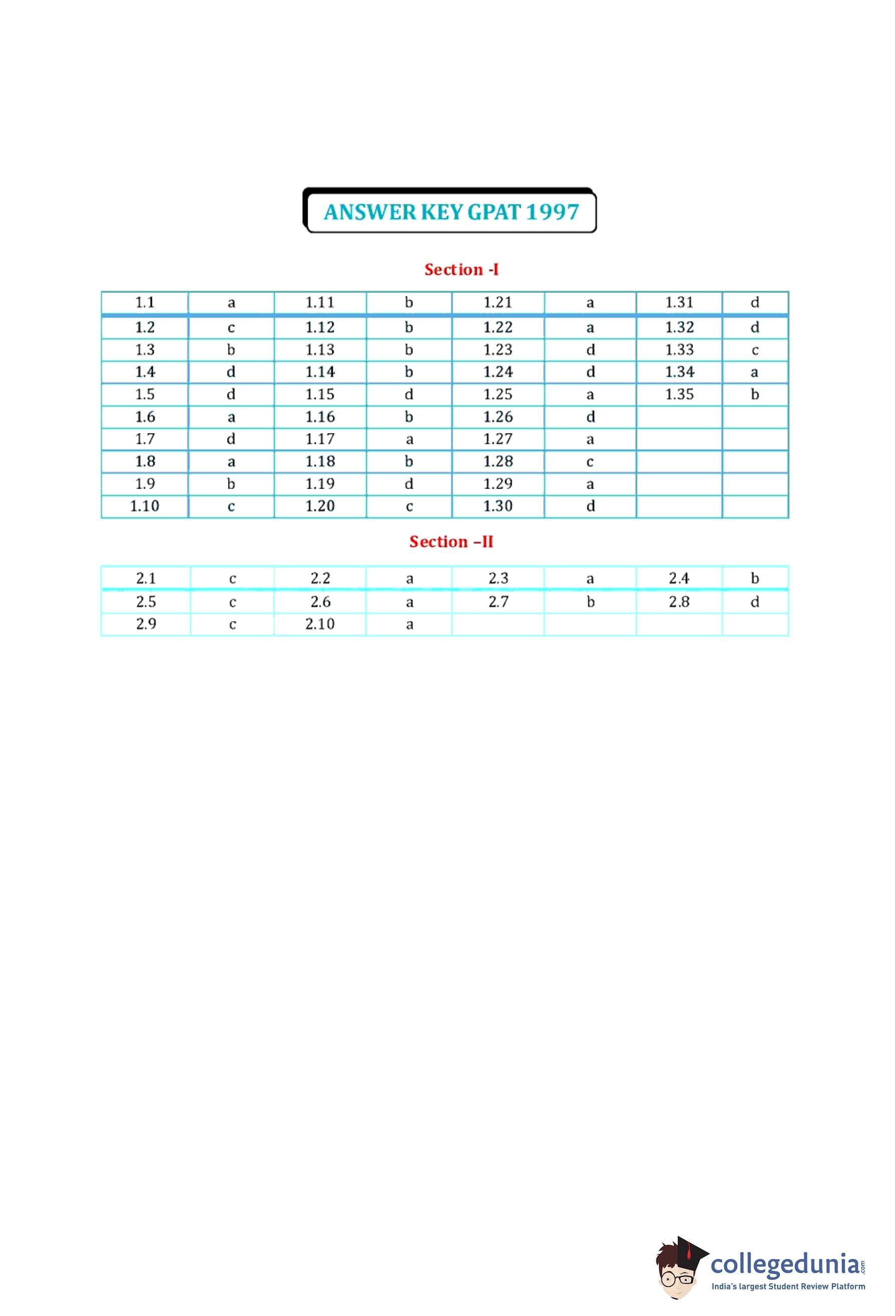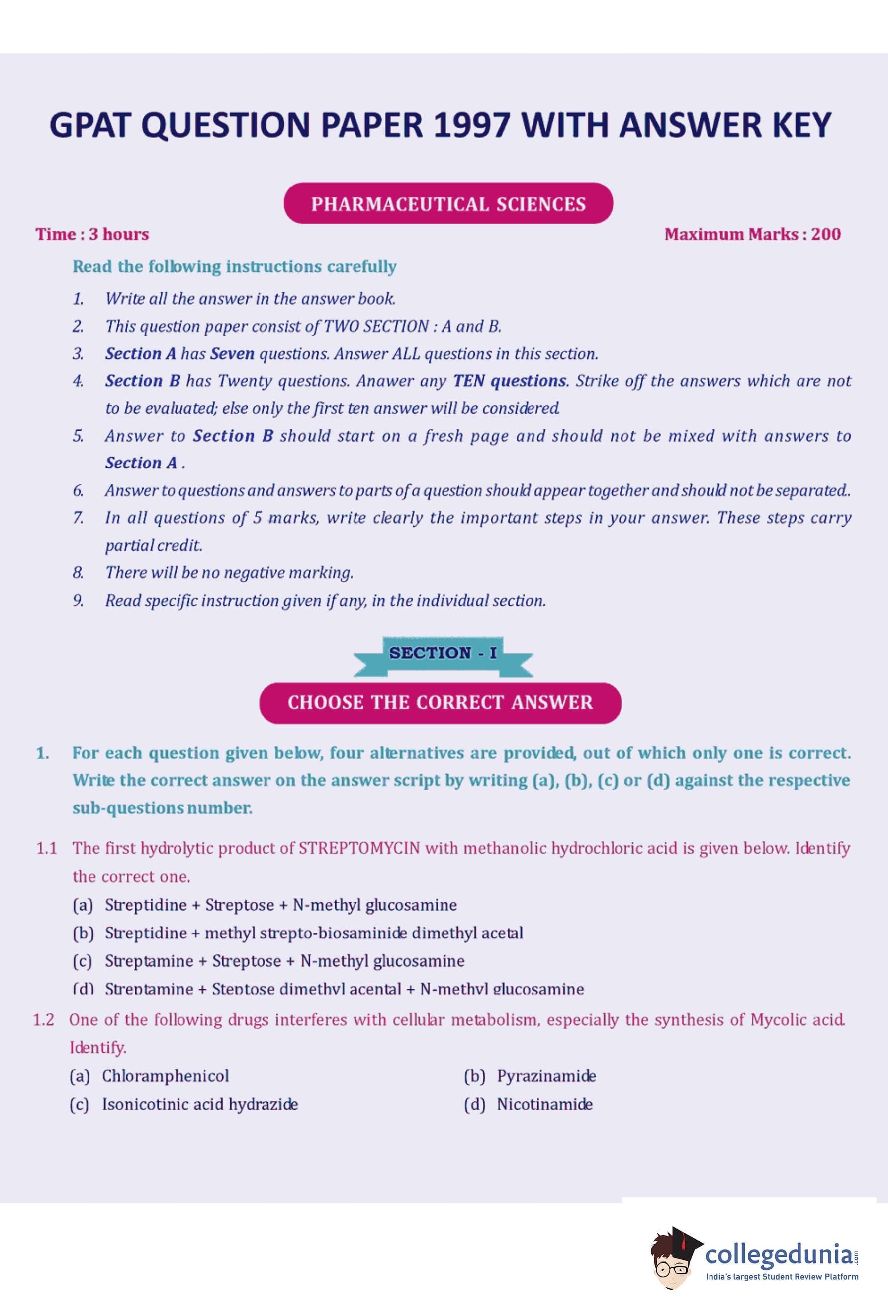 | GPAT 1997 Question Paper PDF | GPAT 1997 Answer Key PDF |