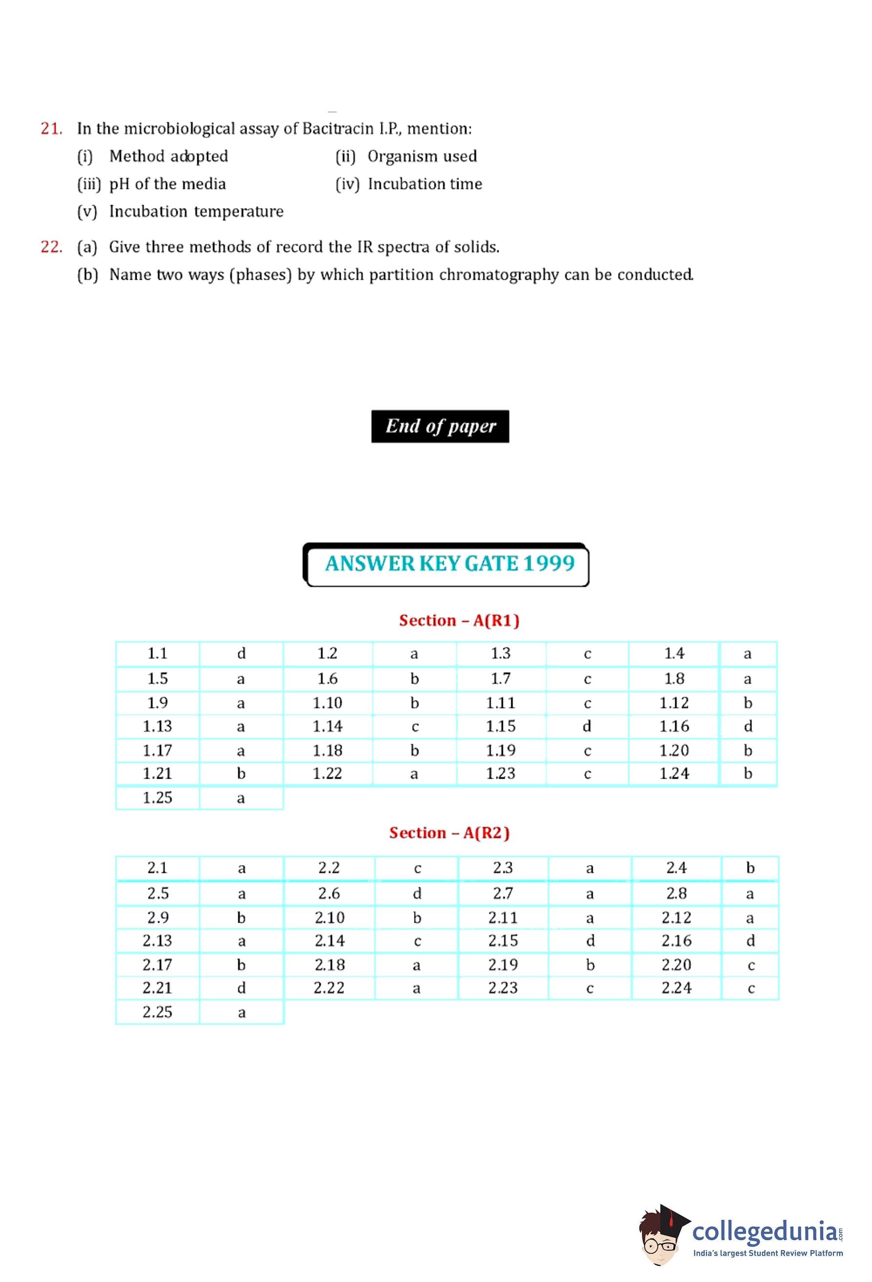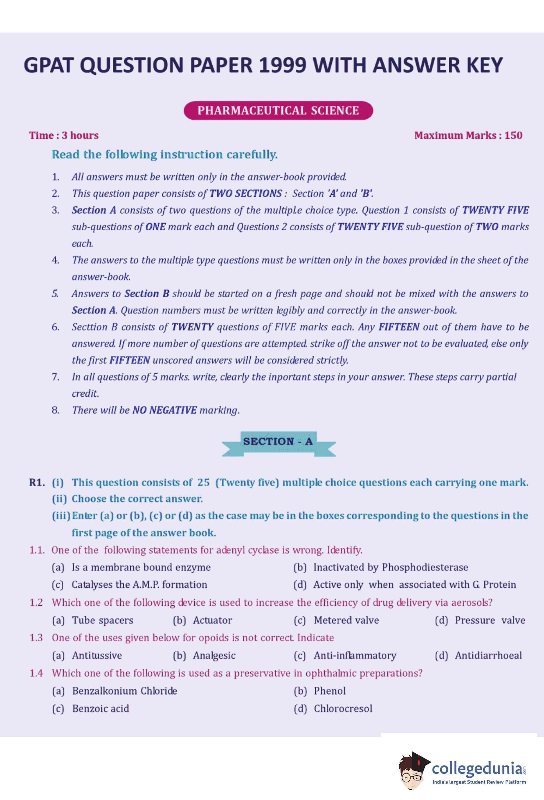 | GPAT 1999 Question Paper PDF | GPAT 1999 Answer Key PDF |