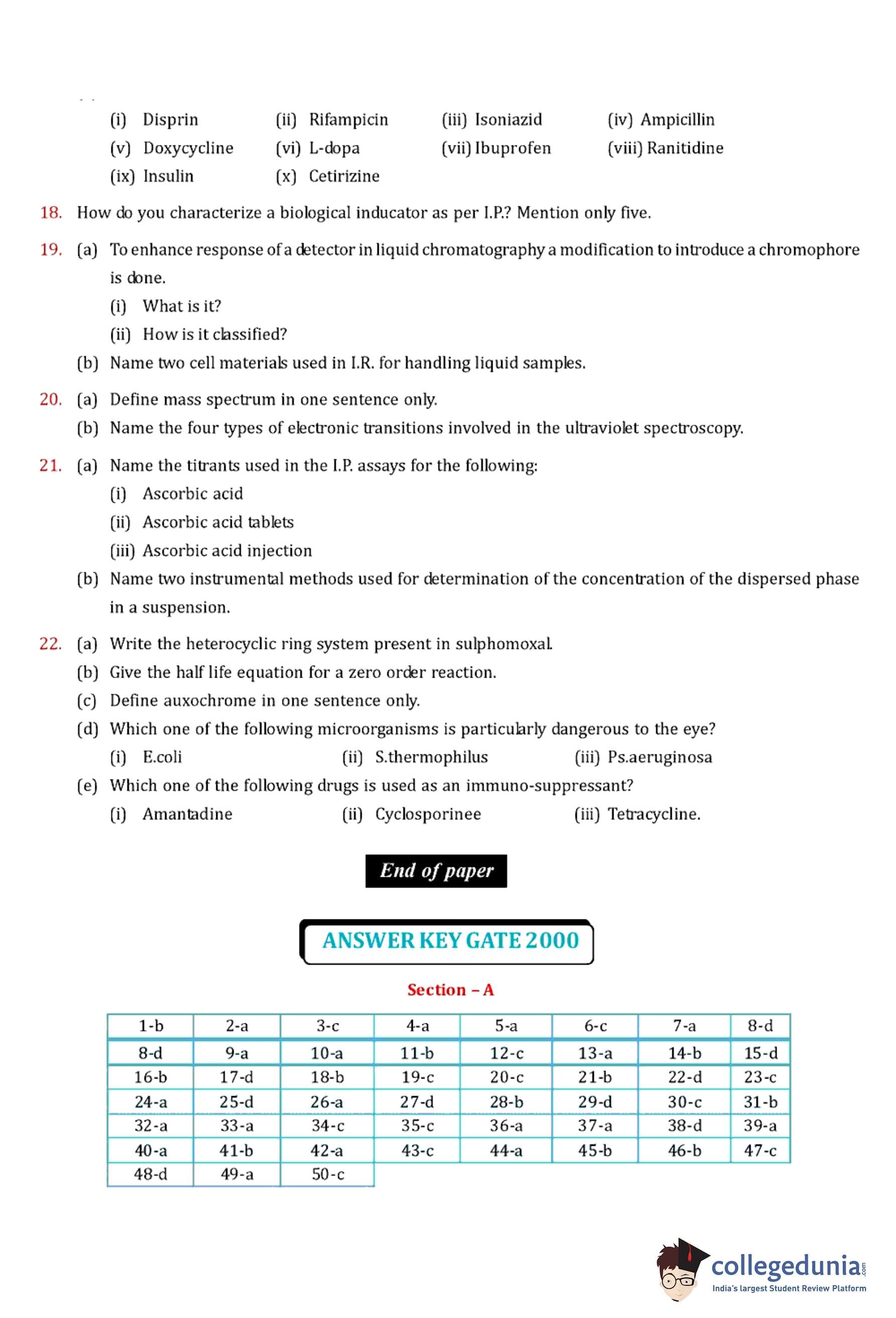 GPAT 2000 Question Paper with Answer Key PDF