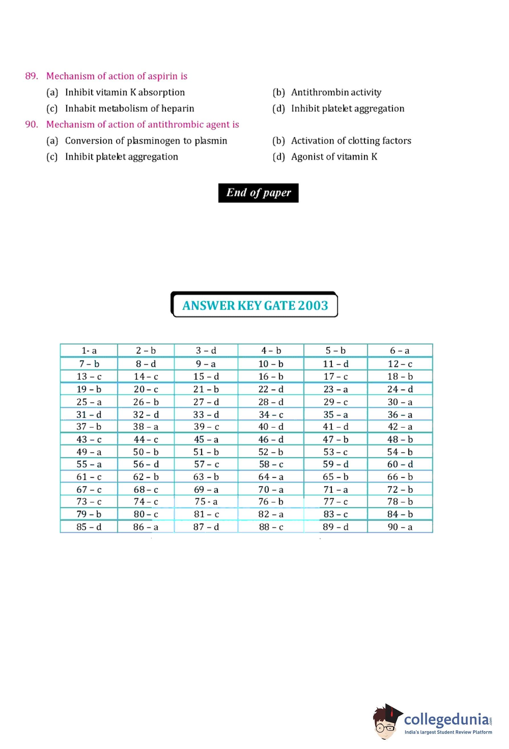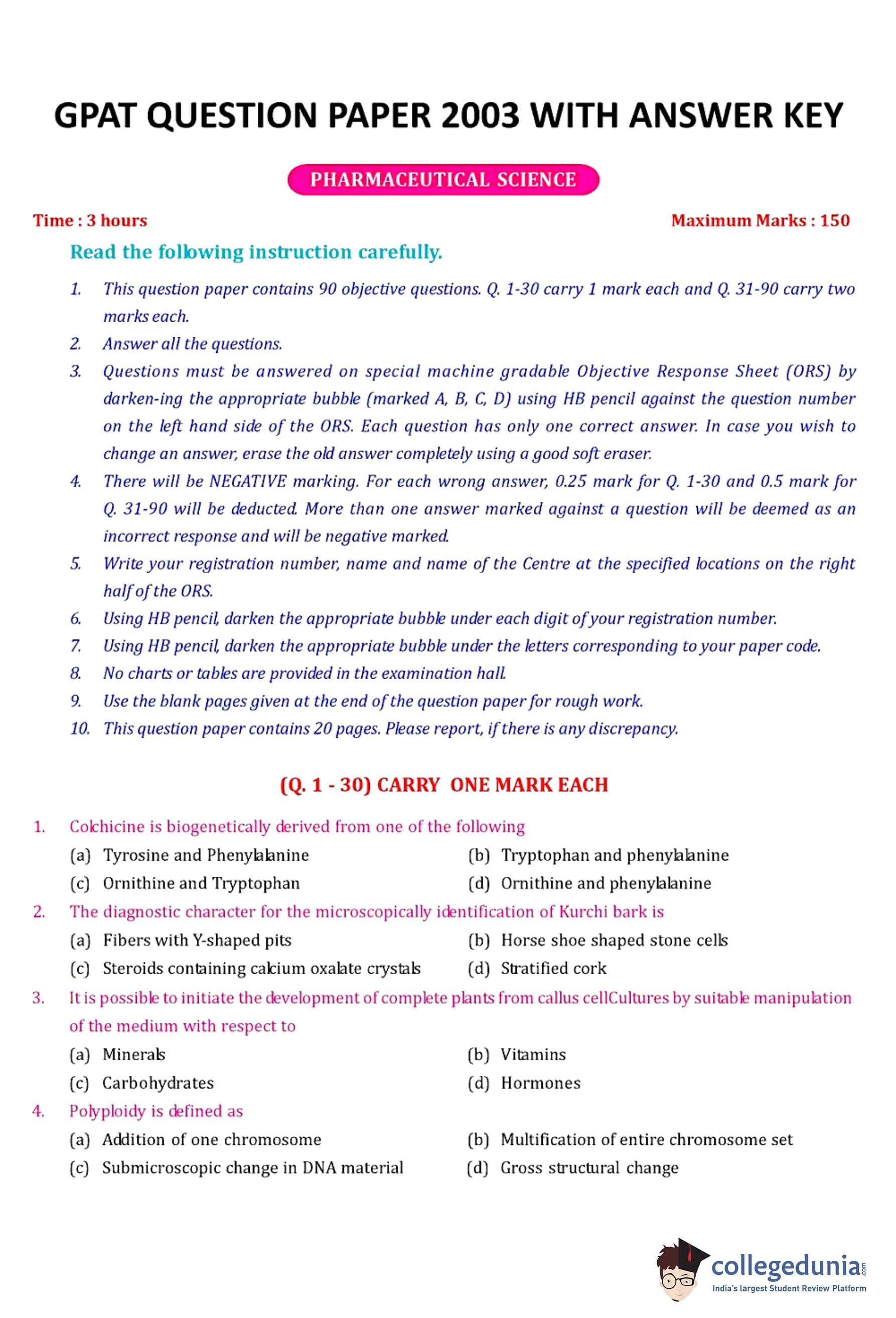 | GPAT 2003 Question Paper PDF | GPAT 2003 Answer Key PDF |