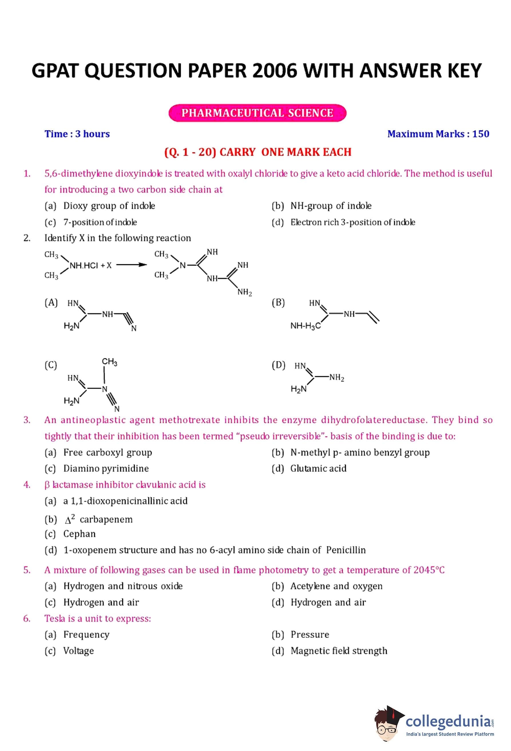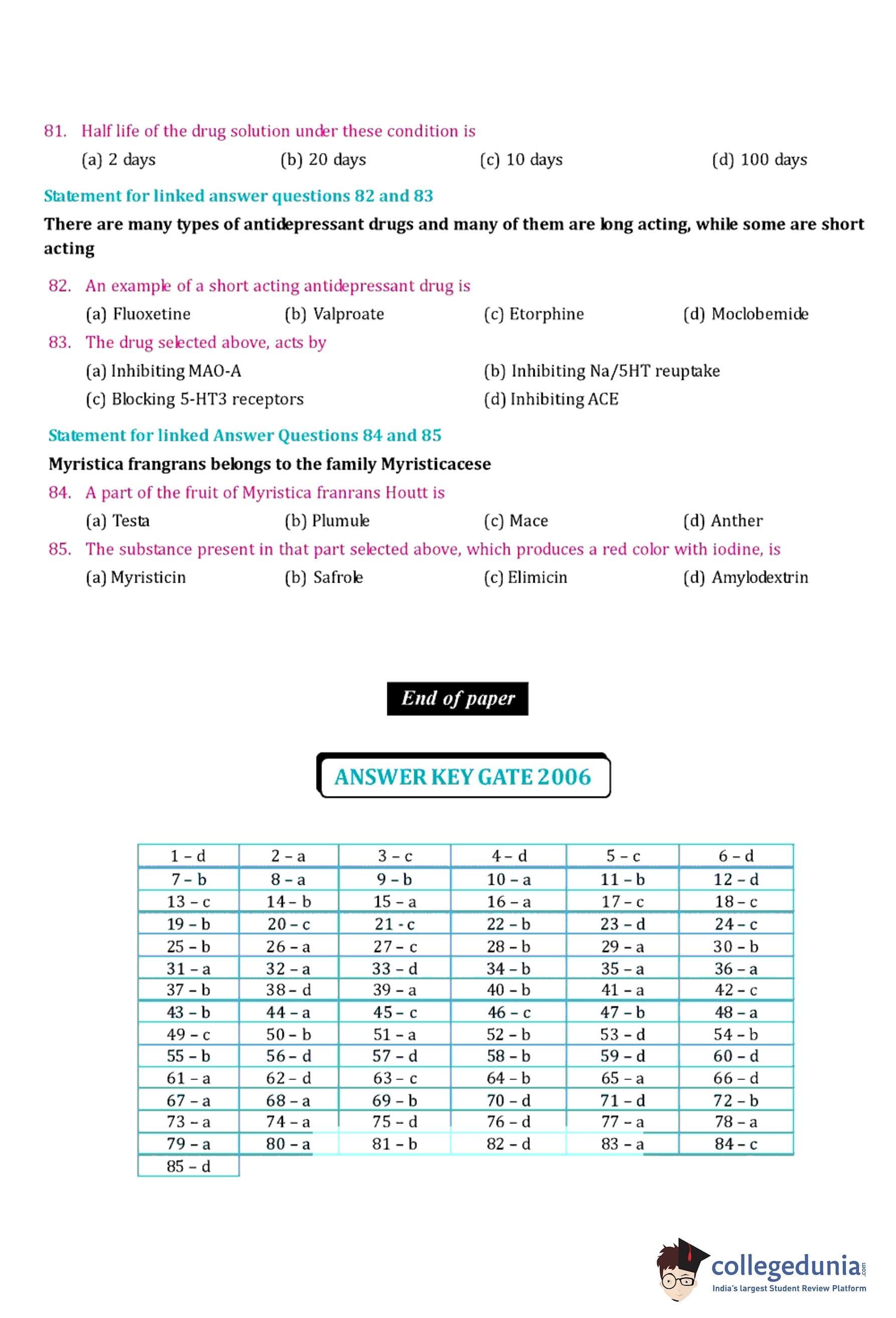 | GPAT 2006 Question Paper PDF | GPAT 2006 Answer Key PDF |
