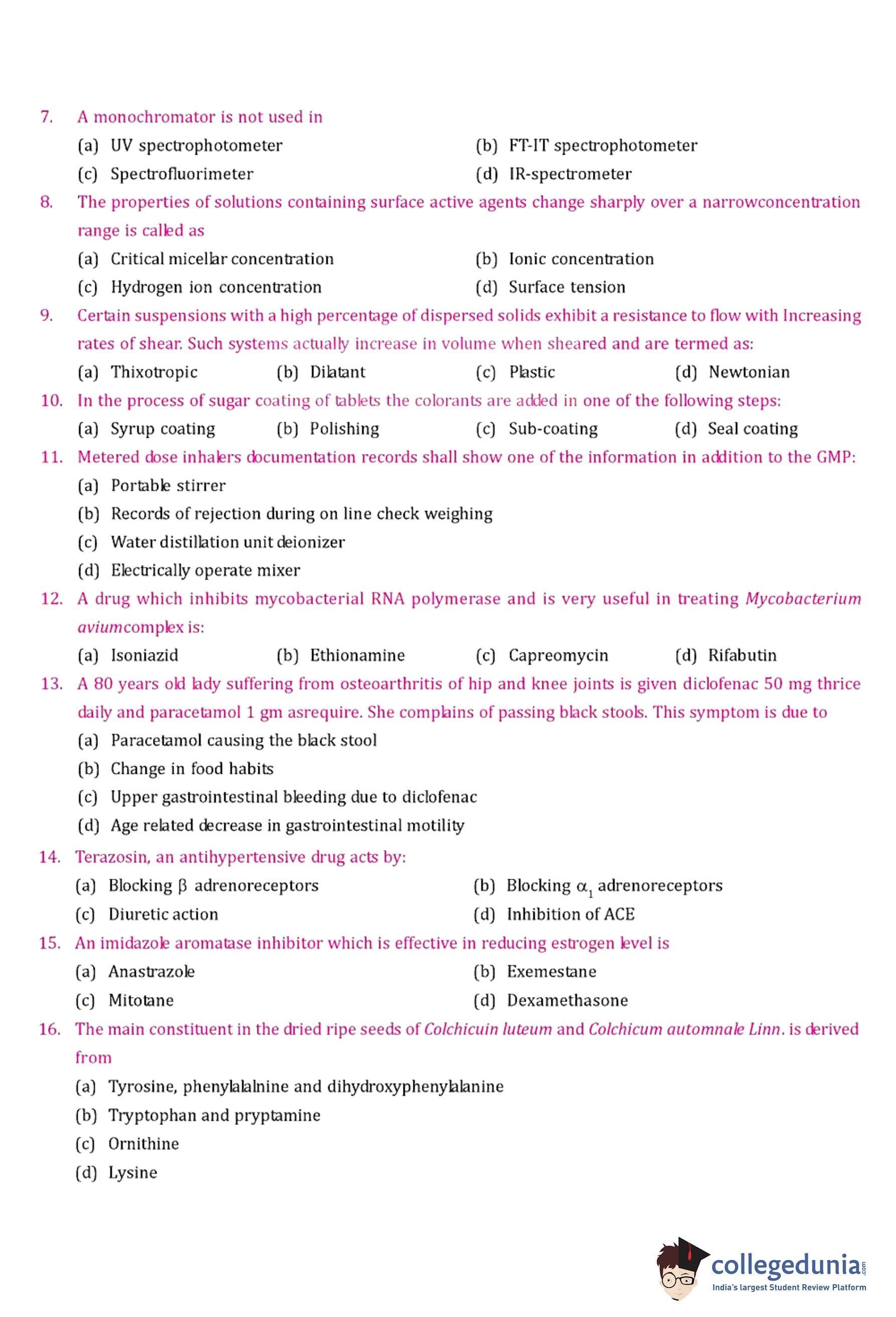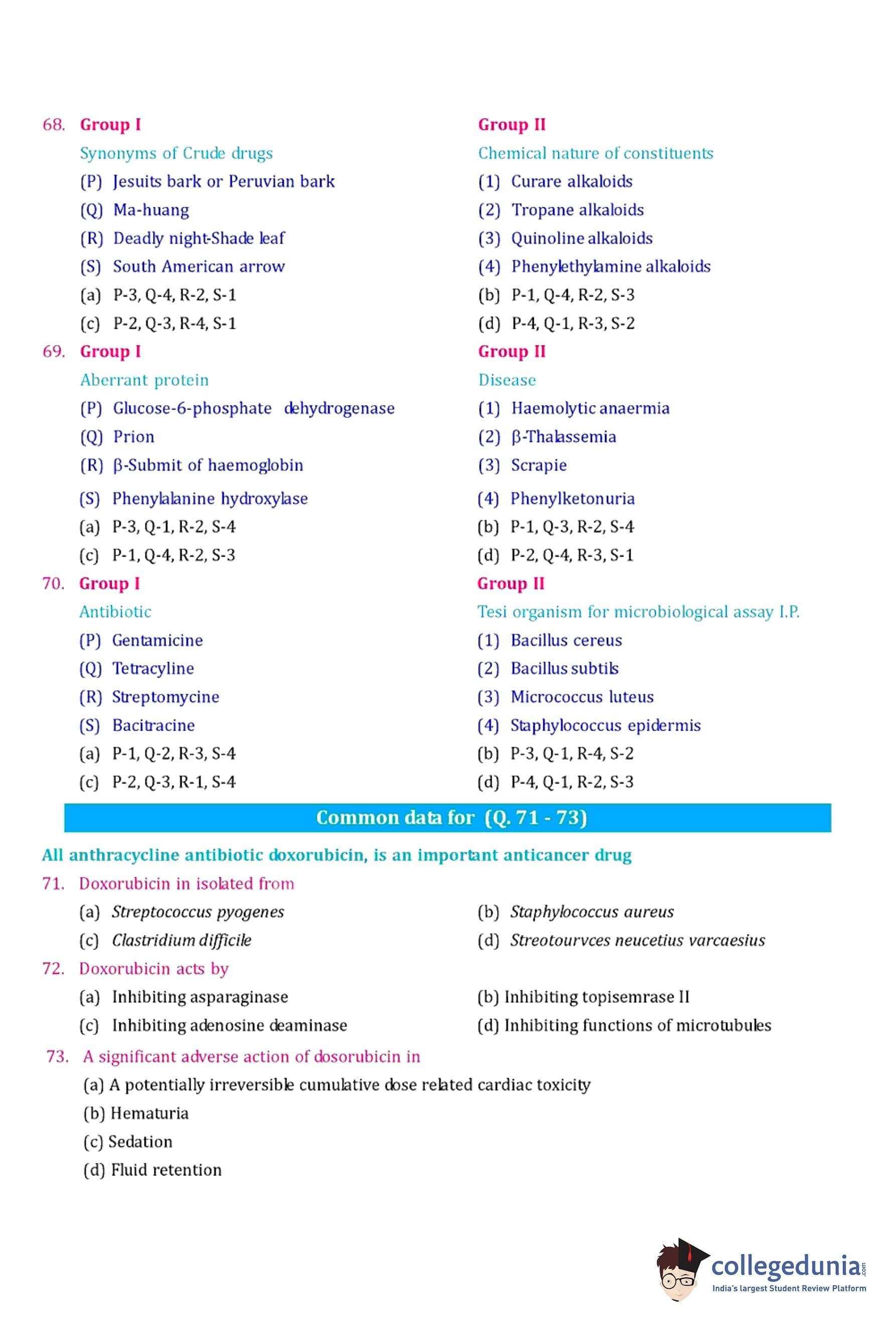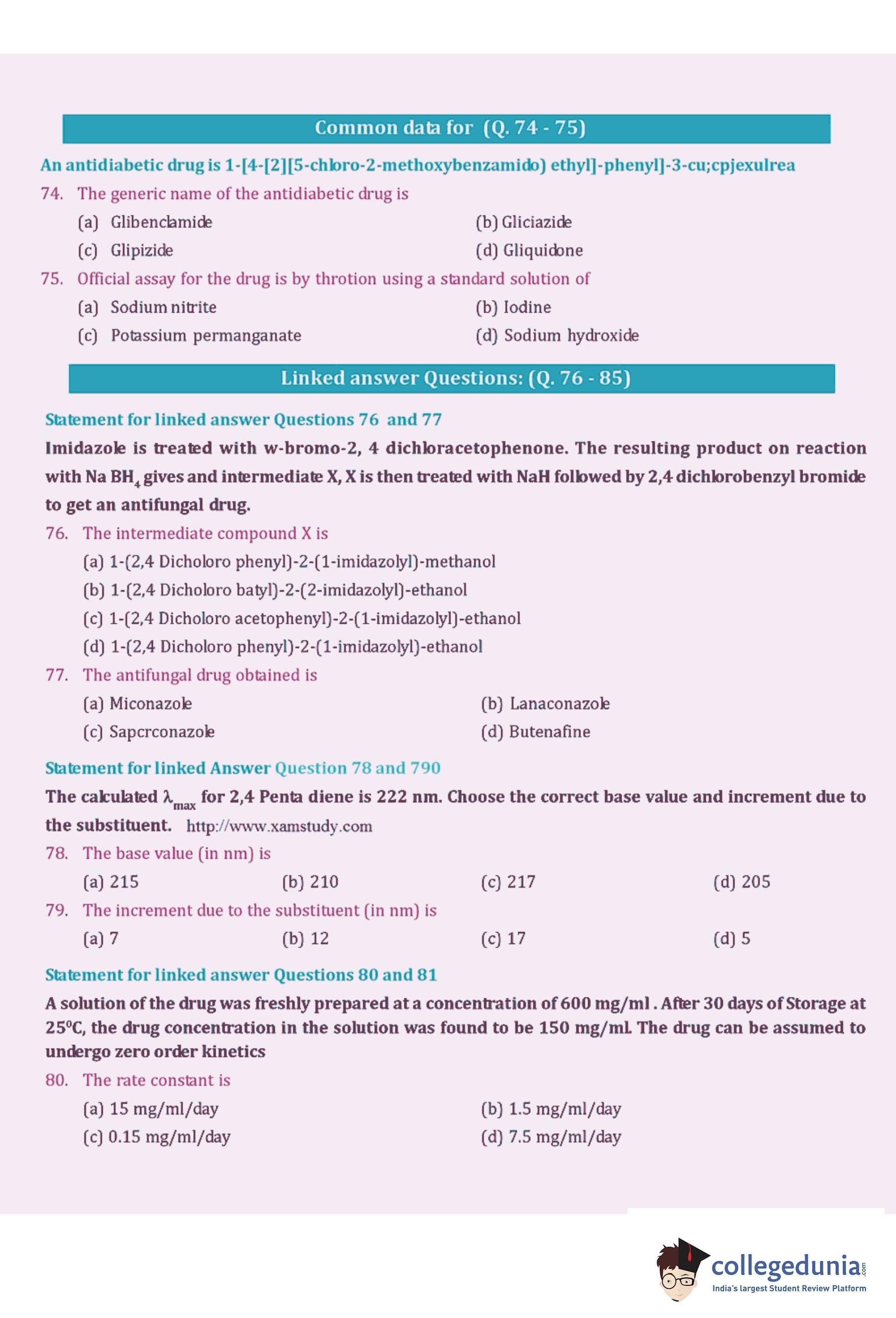GPAT 2006 Question Paper with Answer Key pdf is available for download. The exam was conducted by All India Council for Technical Education (AICTE). The question paper comprised a total of 85 questions.