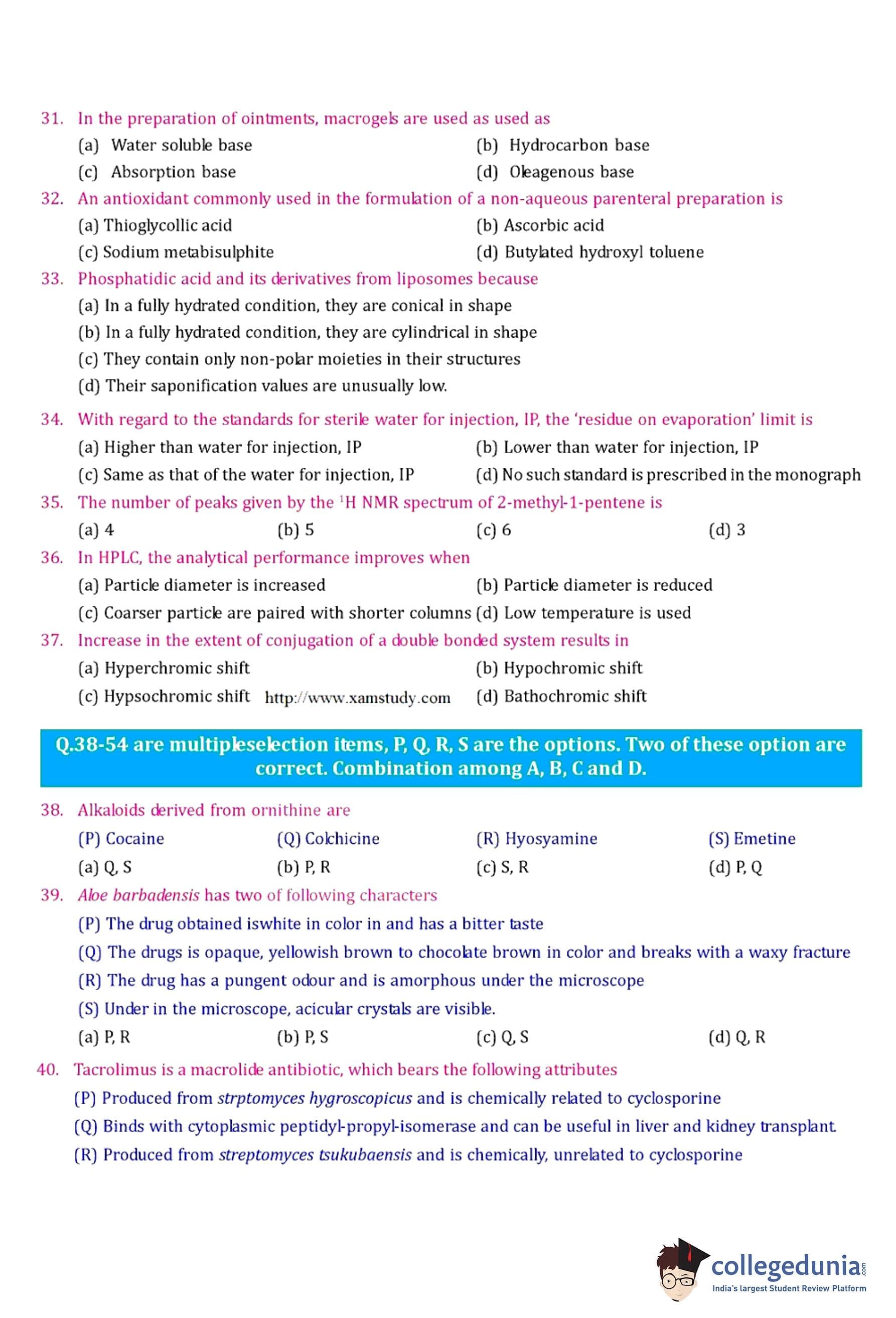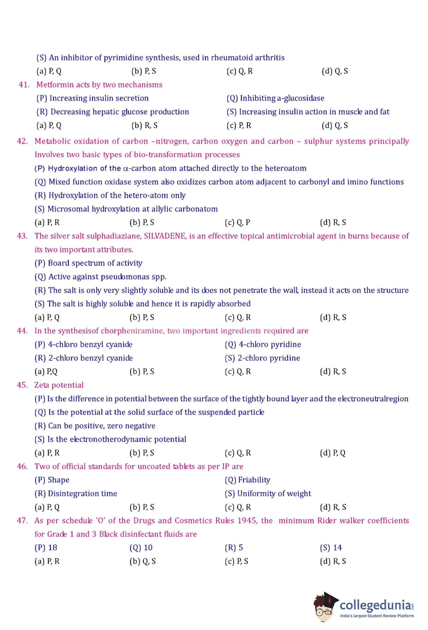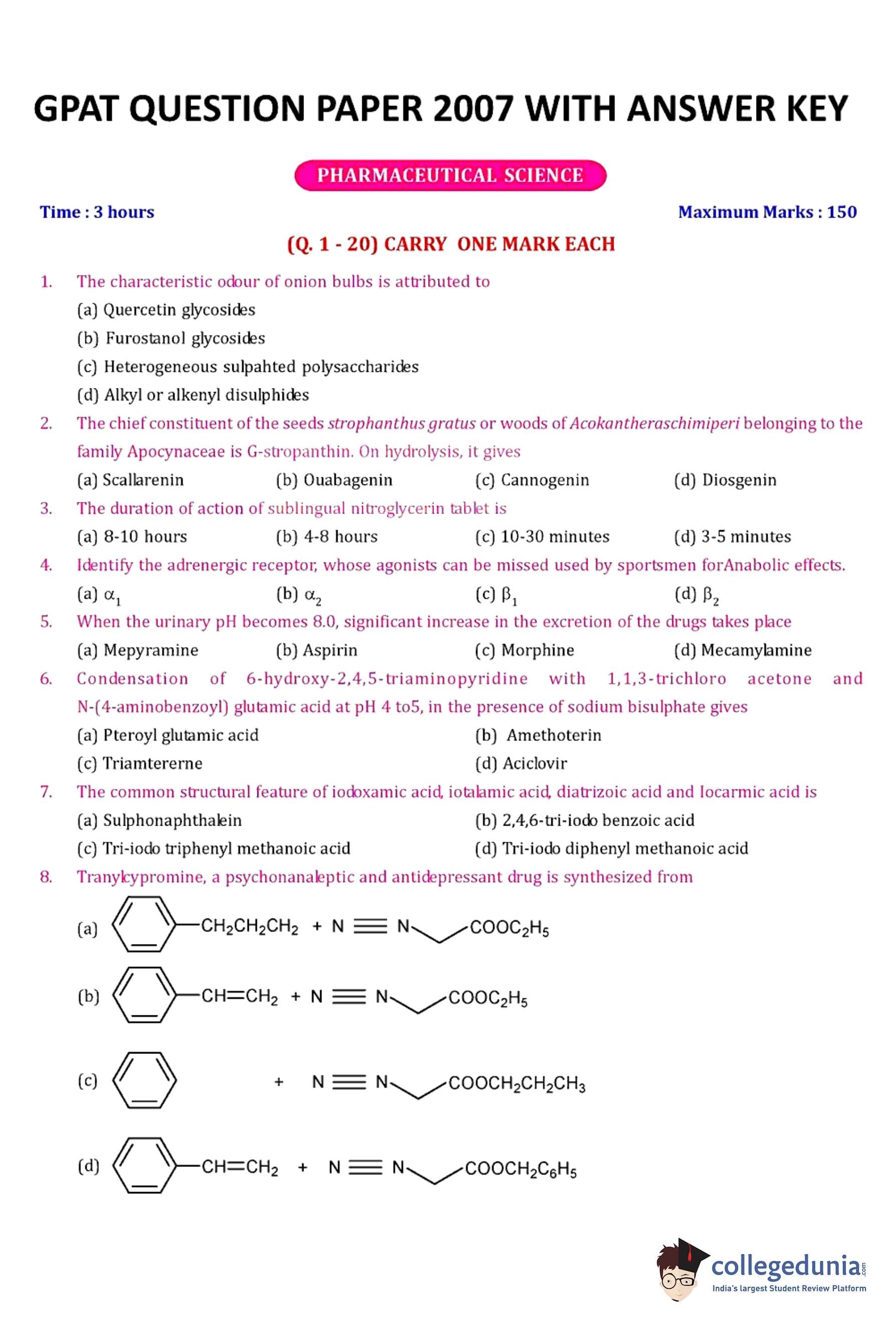 GPAT 2007 Question Paper with Answer Key pdf is available for download. The exam was conducted by All India Council for Technical Education (AICTE). The question paper comprised a total of 85 questions.
