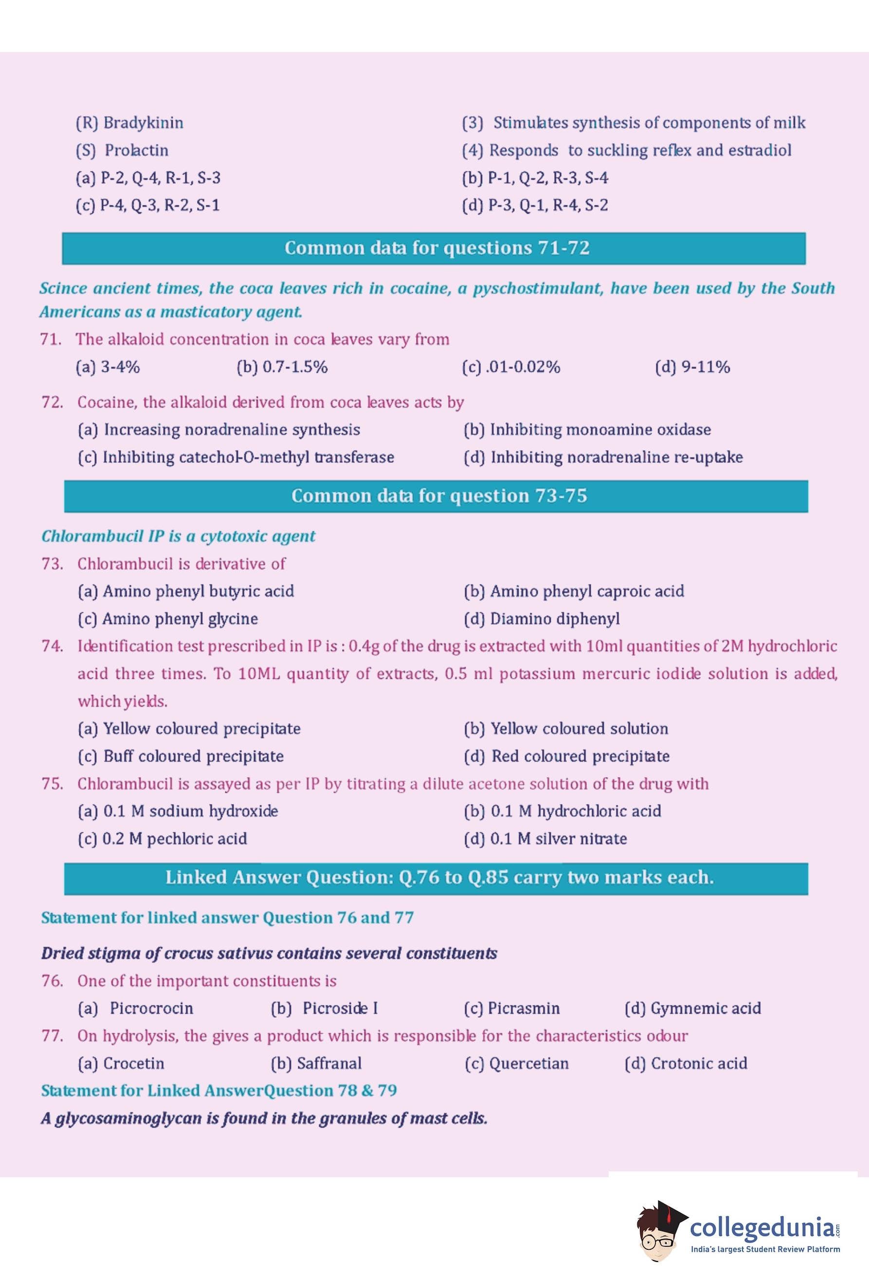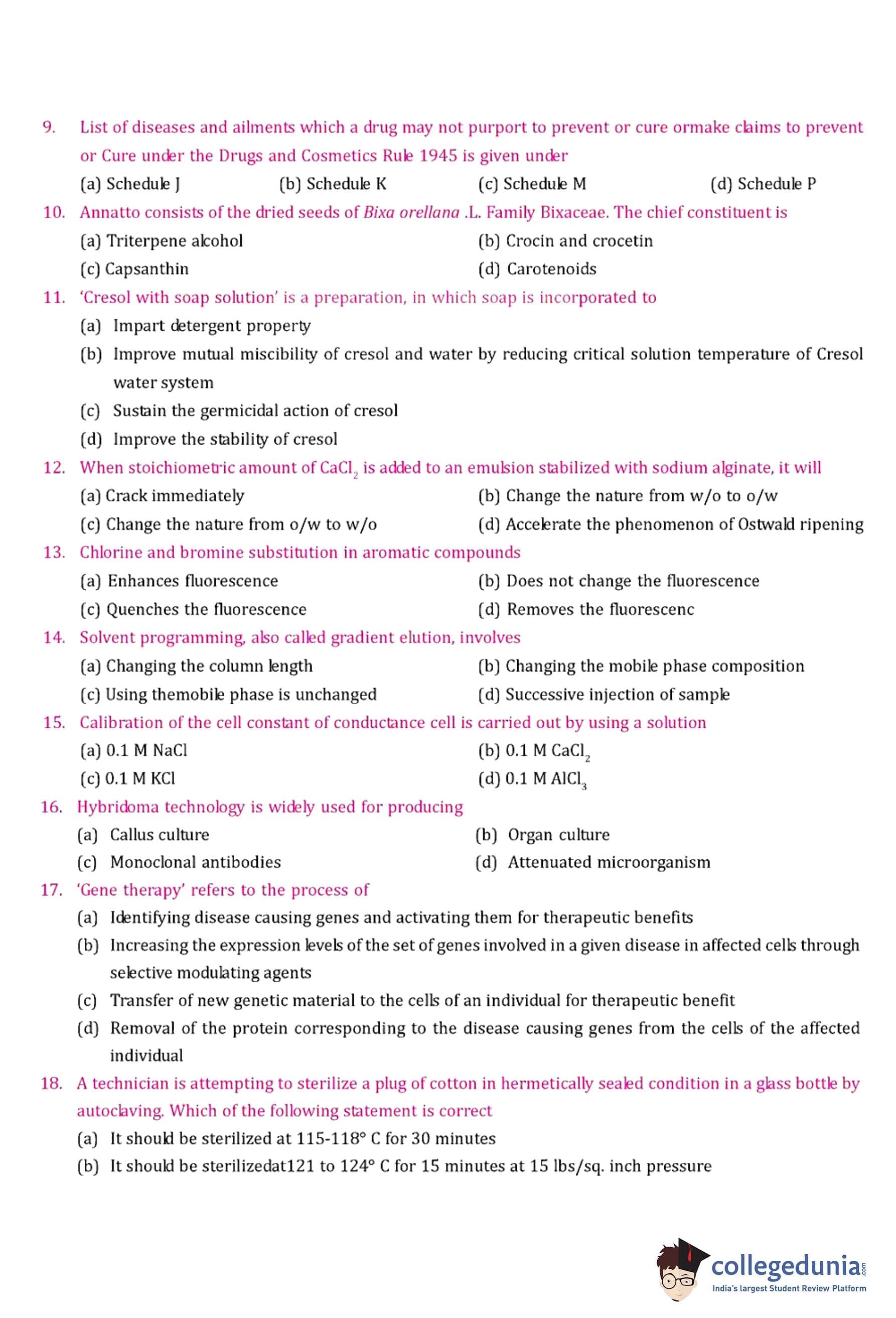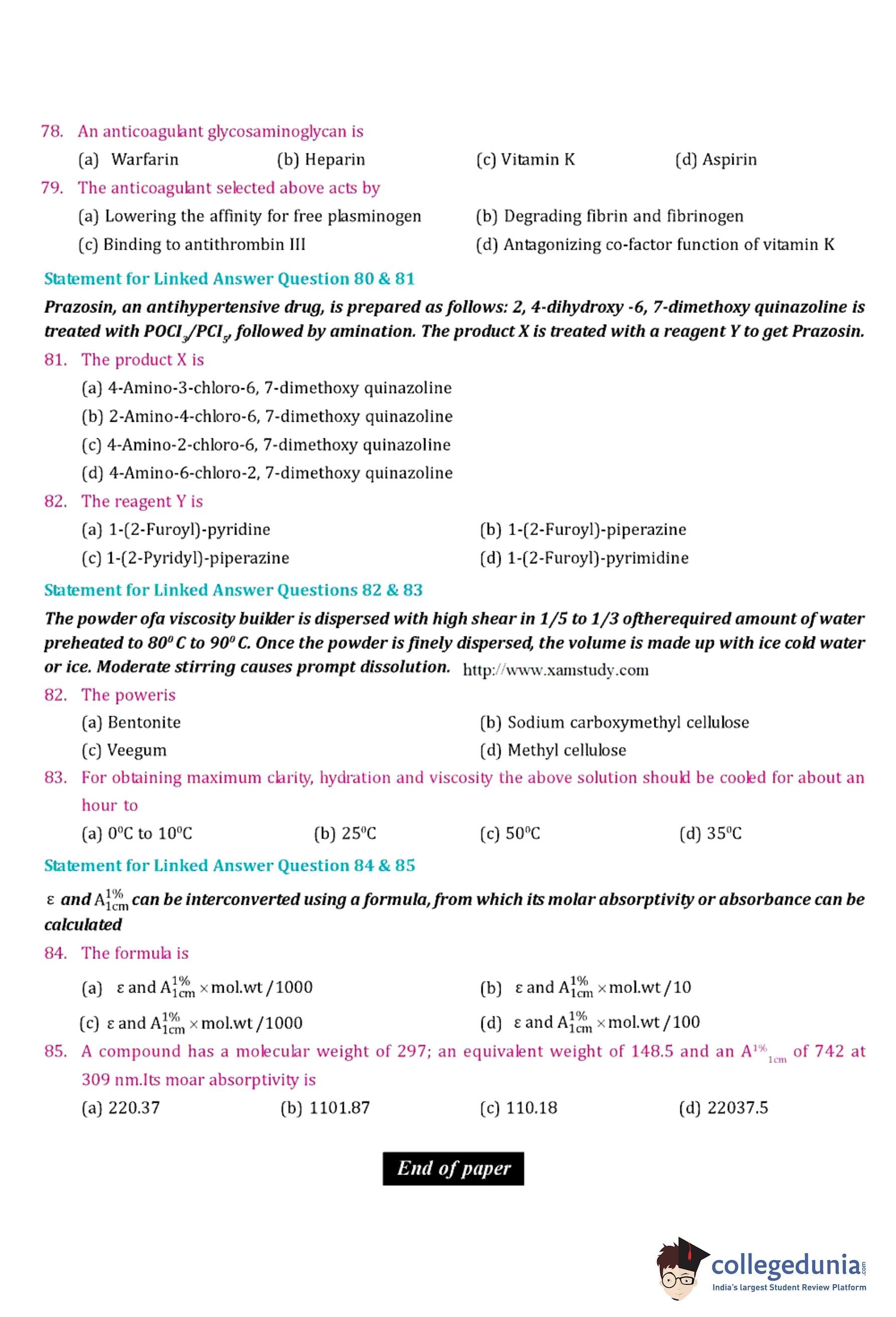 GPAT 2007 Question Paper with Answer Key pdf is available for download. The exam was conducted by All India Council for Technical Education (AICTE). The question paper comprised a total of 85 questions.