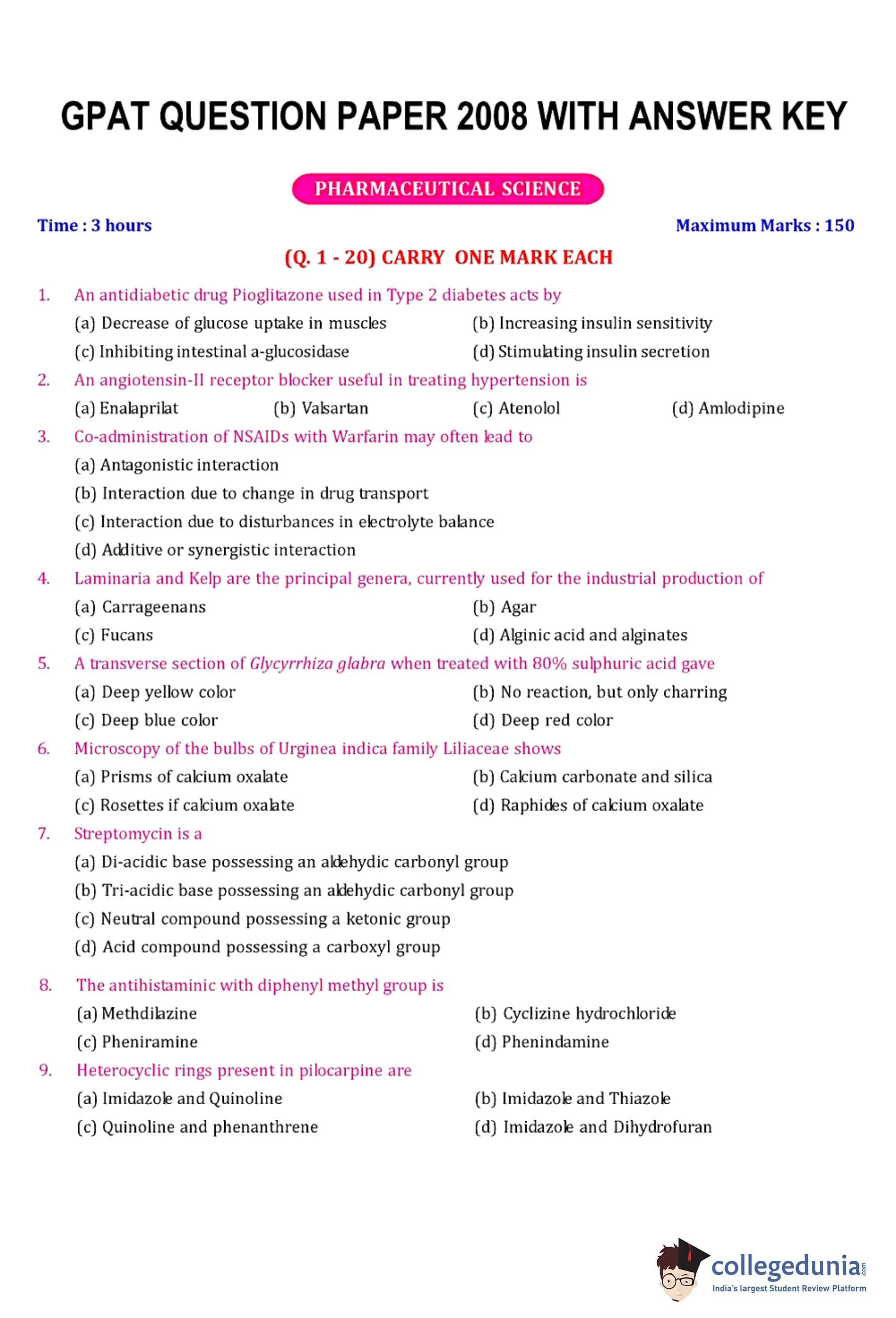 | GPAT 2008 Question Paper PDF | GPAT 2008 Answer Key PDF |