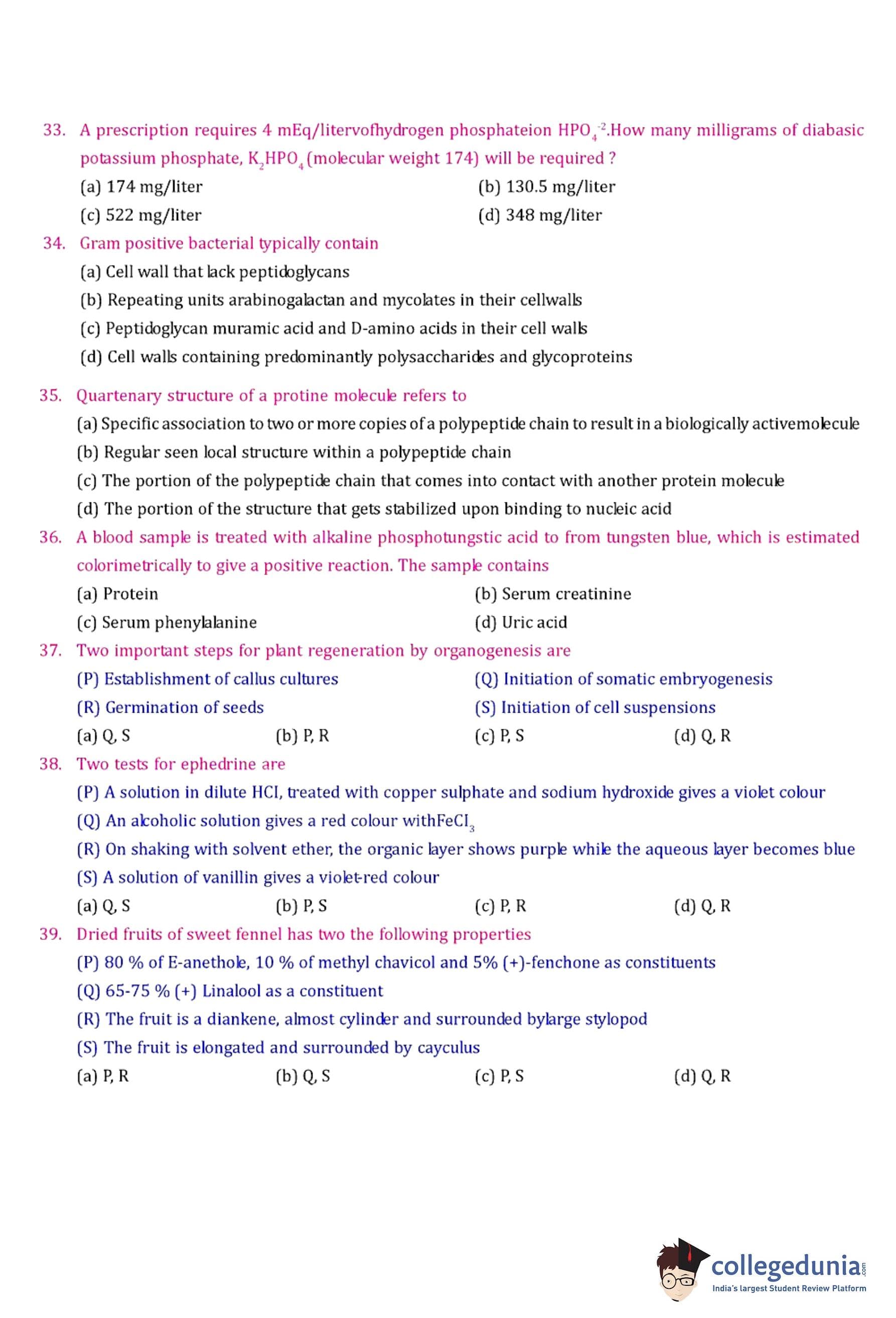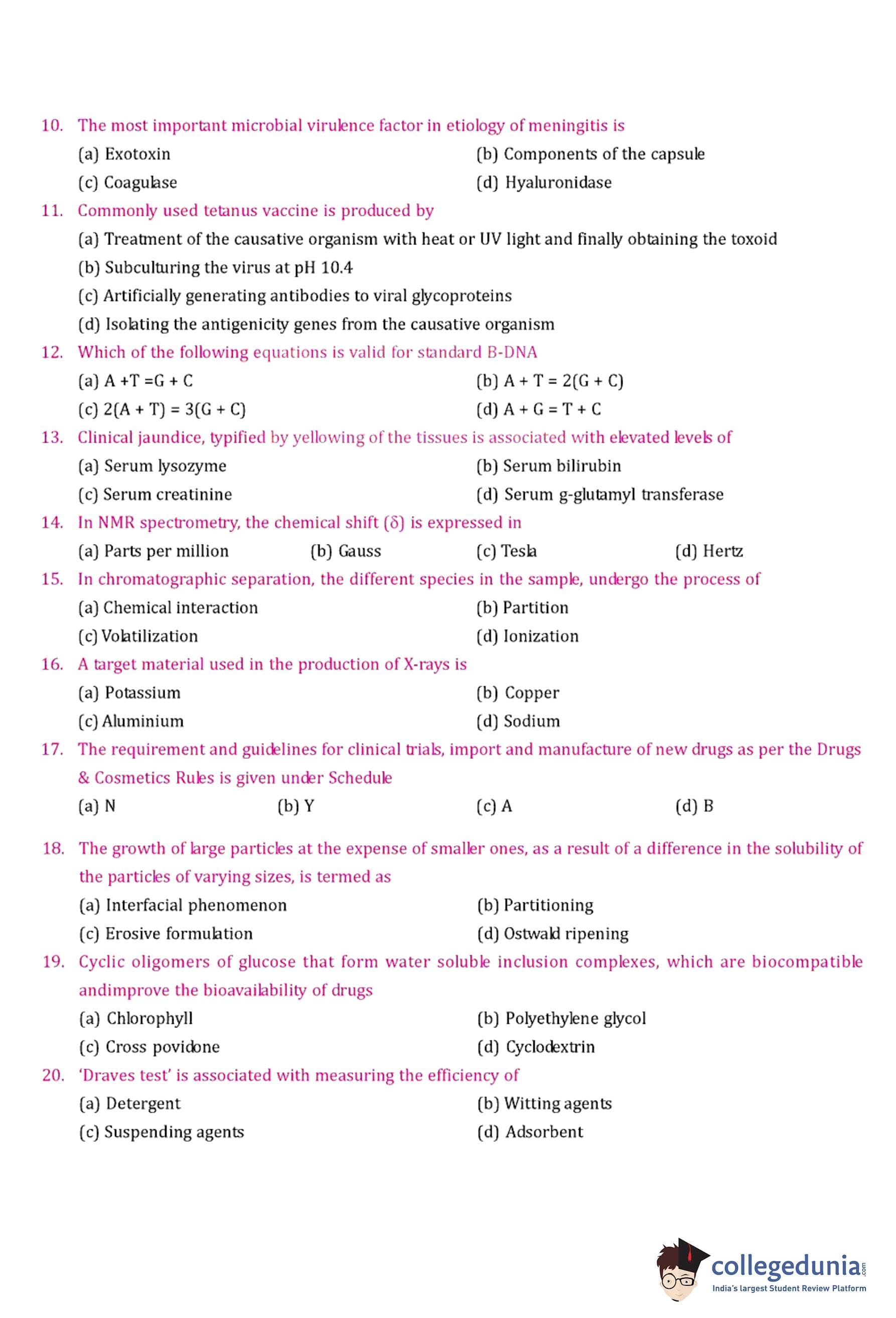 GPAT 2008 Question Paper with Answer Key pdf is available for download. The exam was conducted by All India Council for Technical Education (AICTE). The question paper comprised a total of 85 questions.