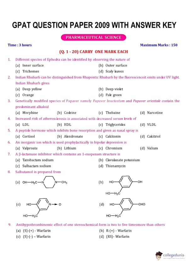 | GPAT 2009 Question Paper PDF | GPAT 2009 Answer Key PDF |