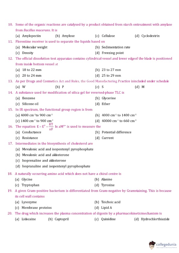 GPAT 2009 Question Paper with Answer Key pdf is available for download. The exam was conducted by All India Council for Technical Education (AICTE). The question paper comprised a total of 60 questions.