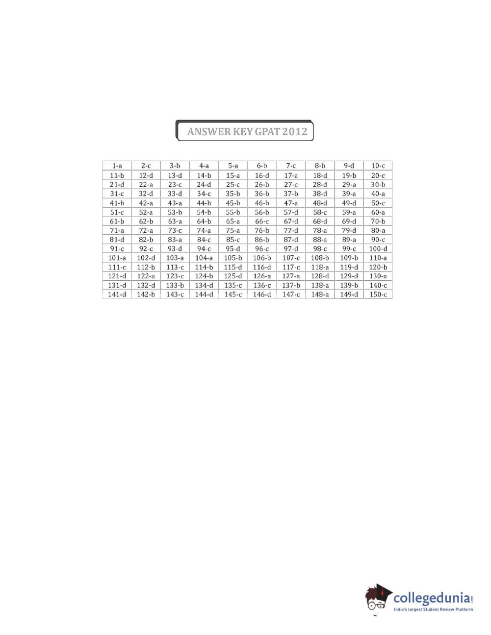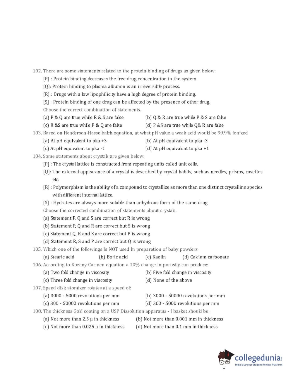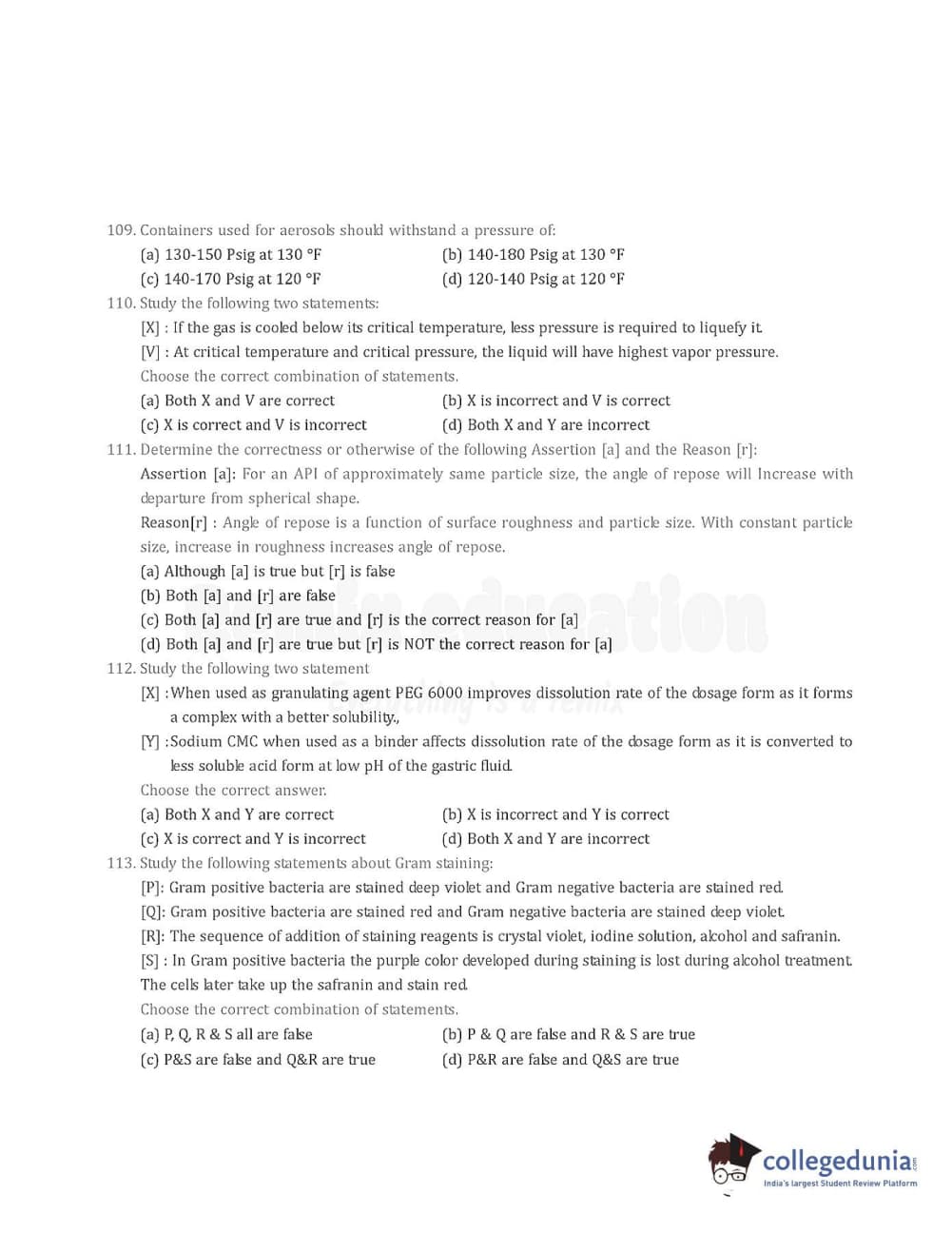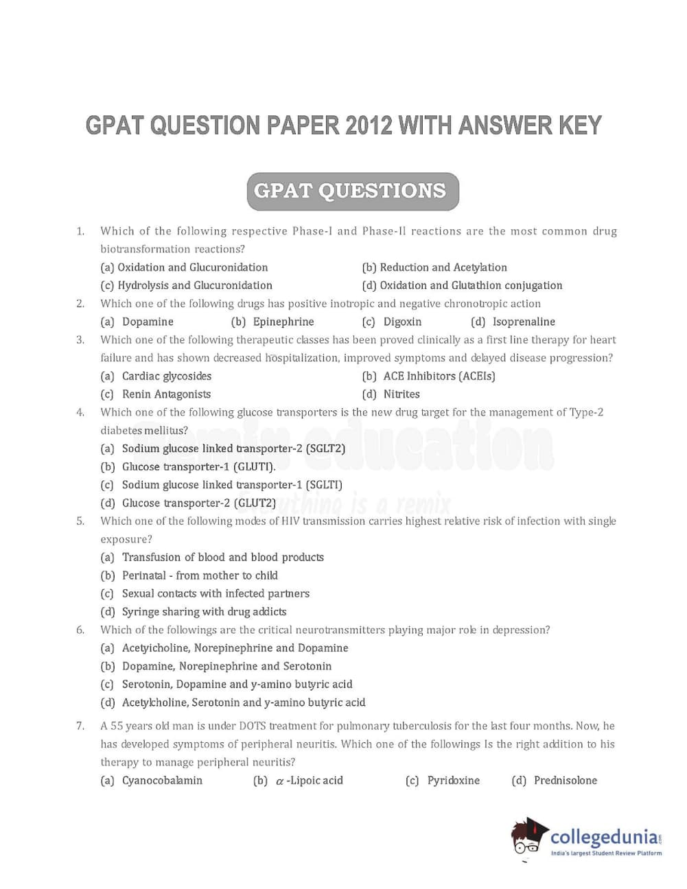 Collegedunia has provided GPAT Previous Year Question paper pdf with answer key in the links given below: