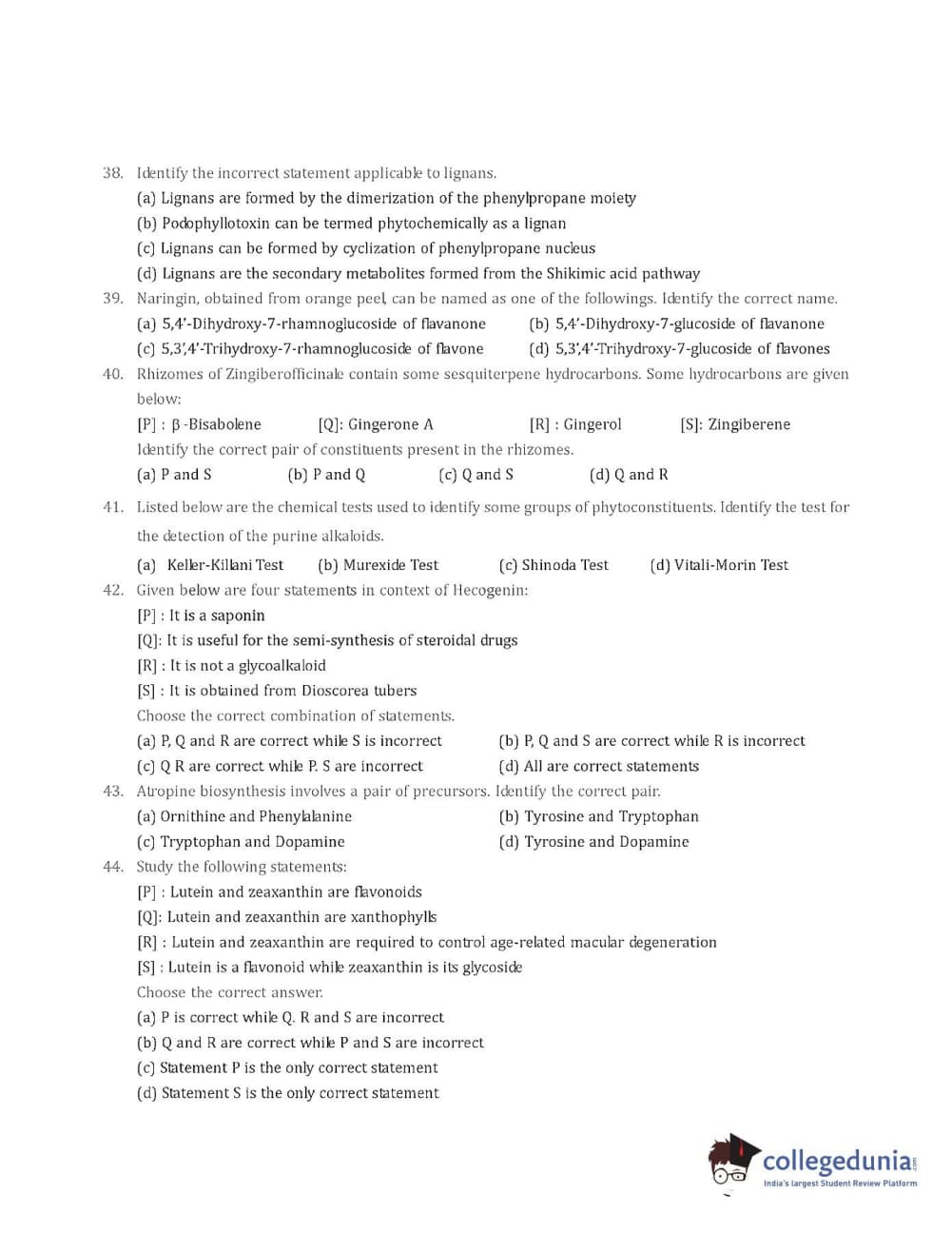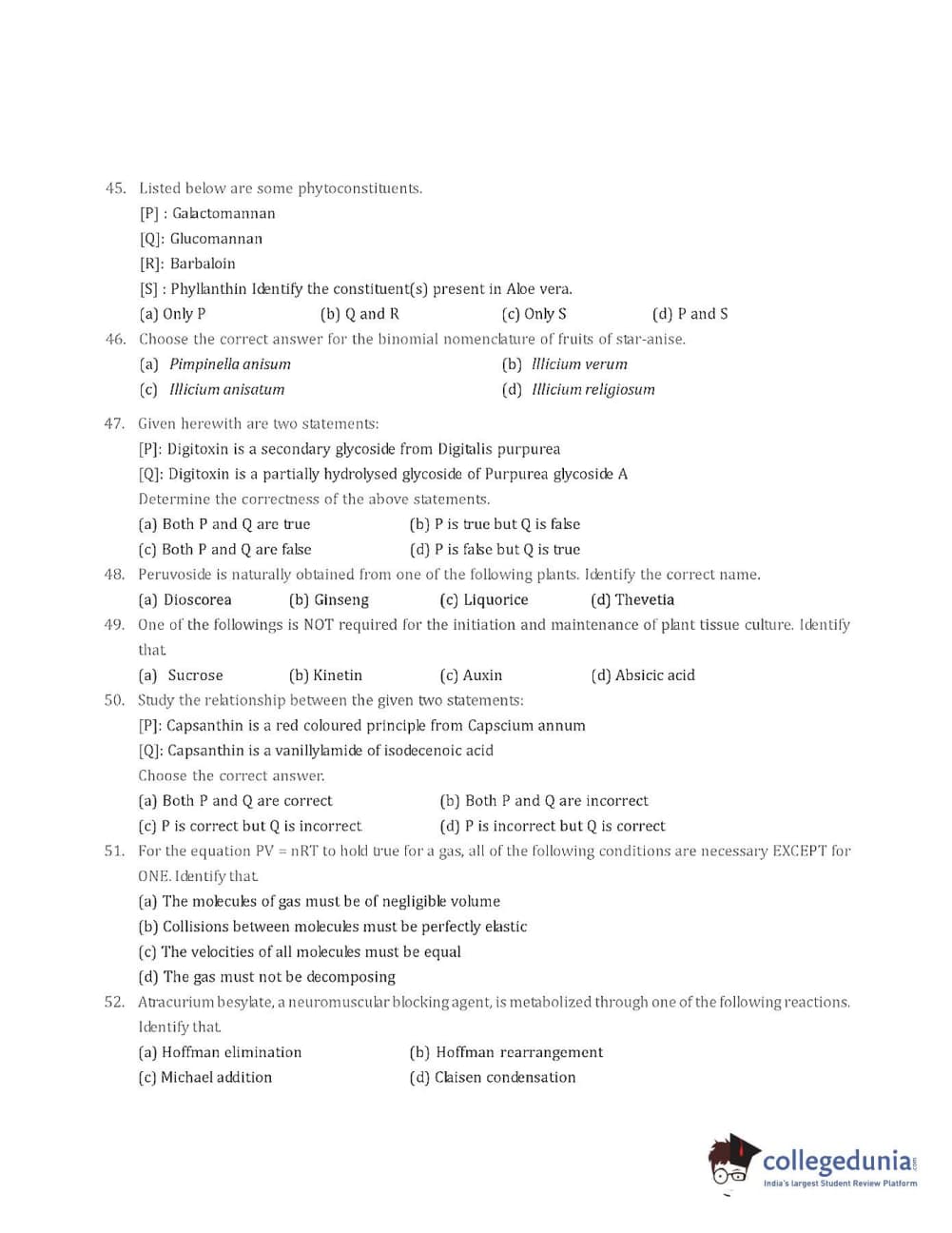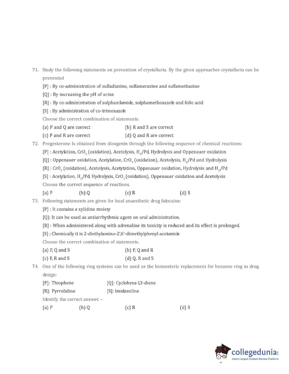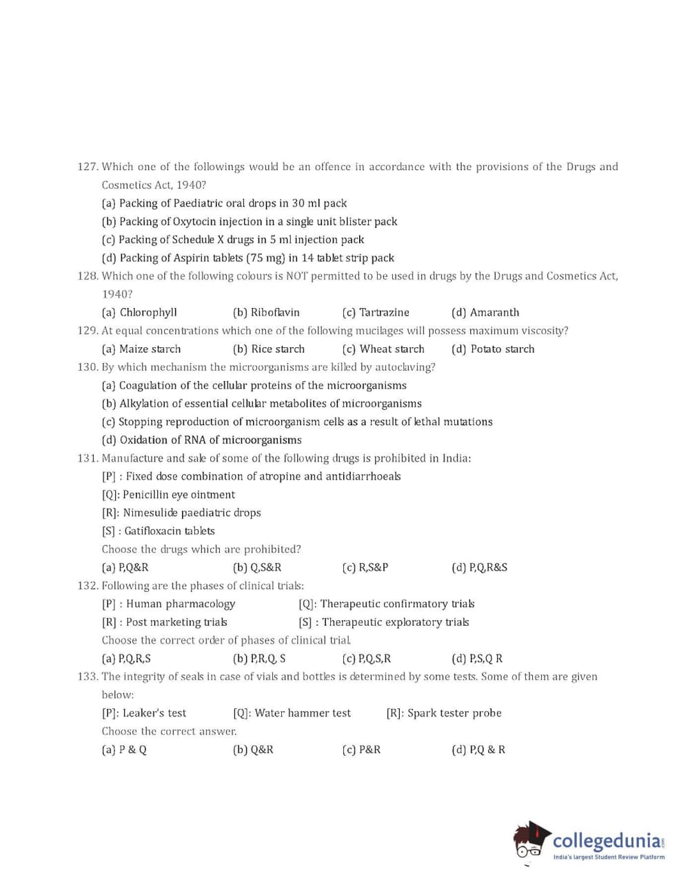 Collegedunia has provided GPAT Previous Year Question paper pdf with answer key in the links given below: