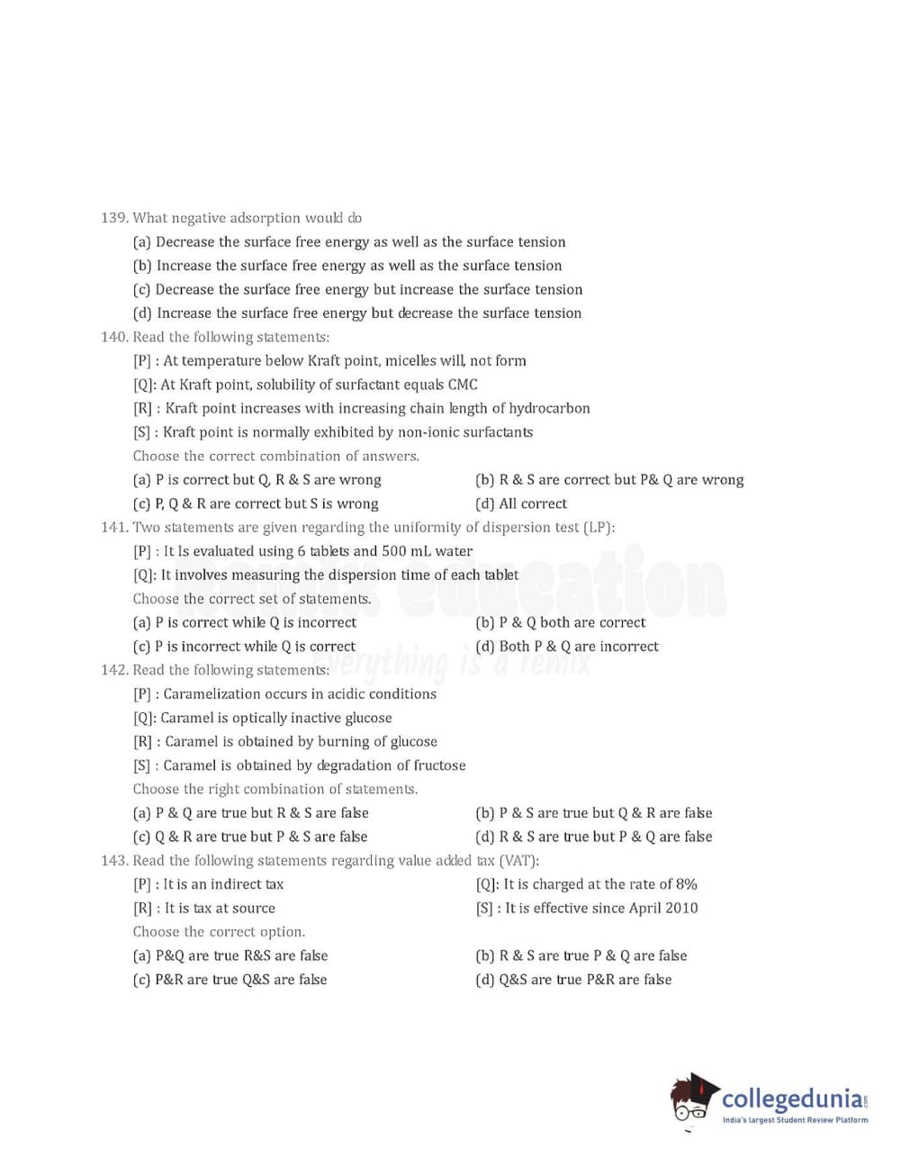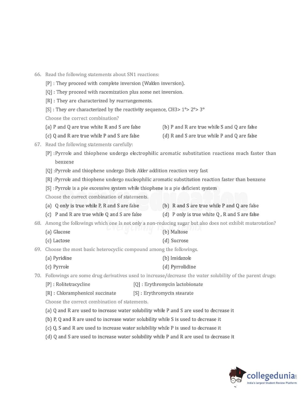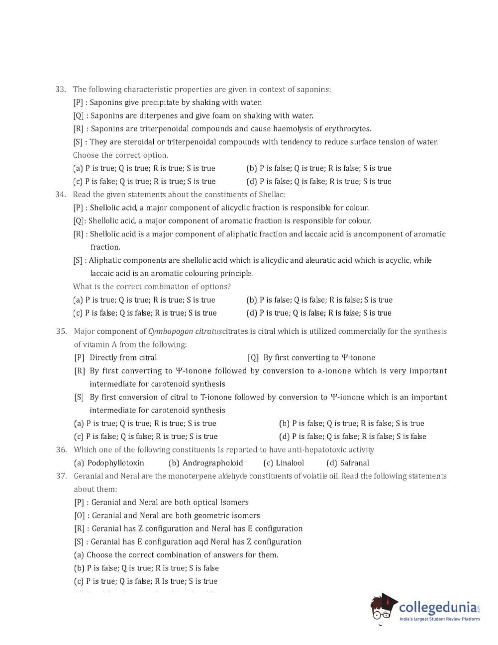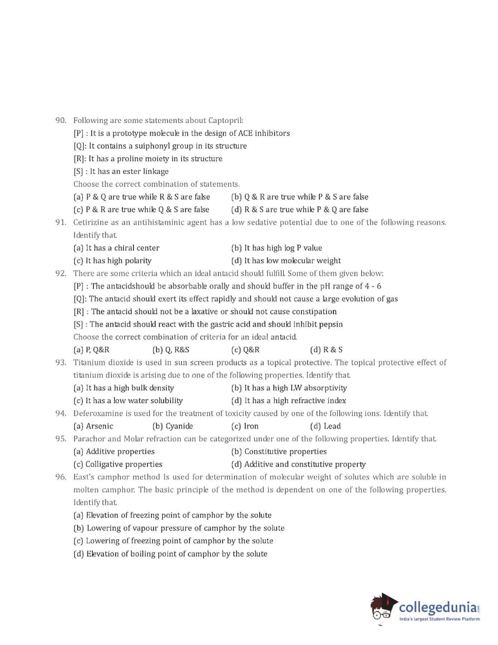 Collegedunia has provided GPAT Previous Year Question paper pdf with answer key in the links given below: