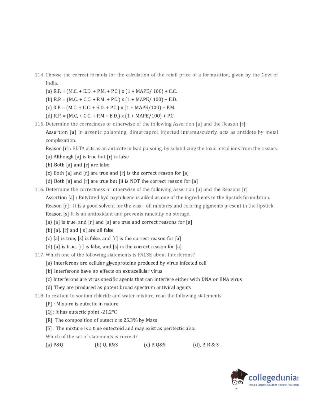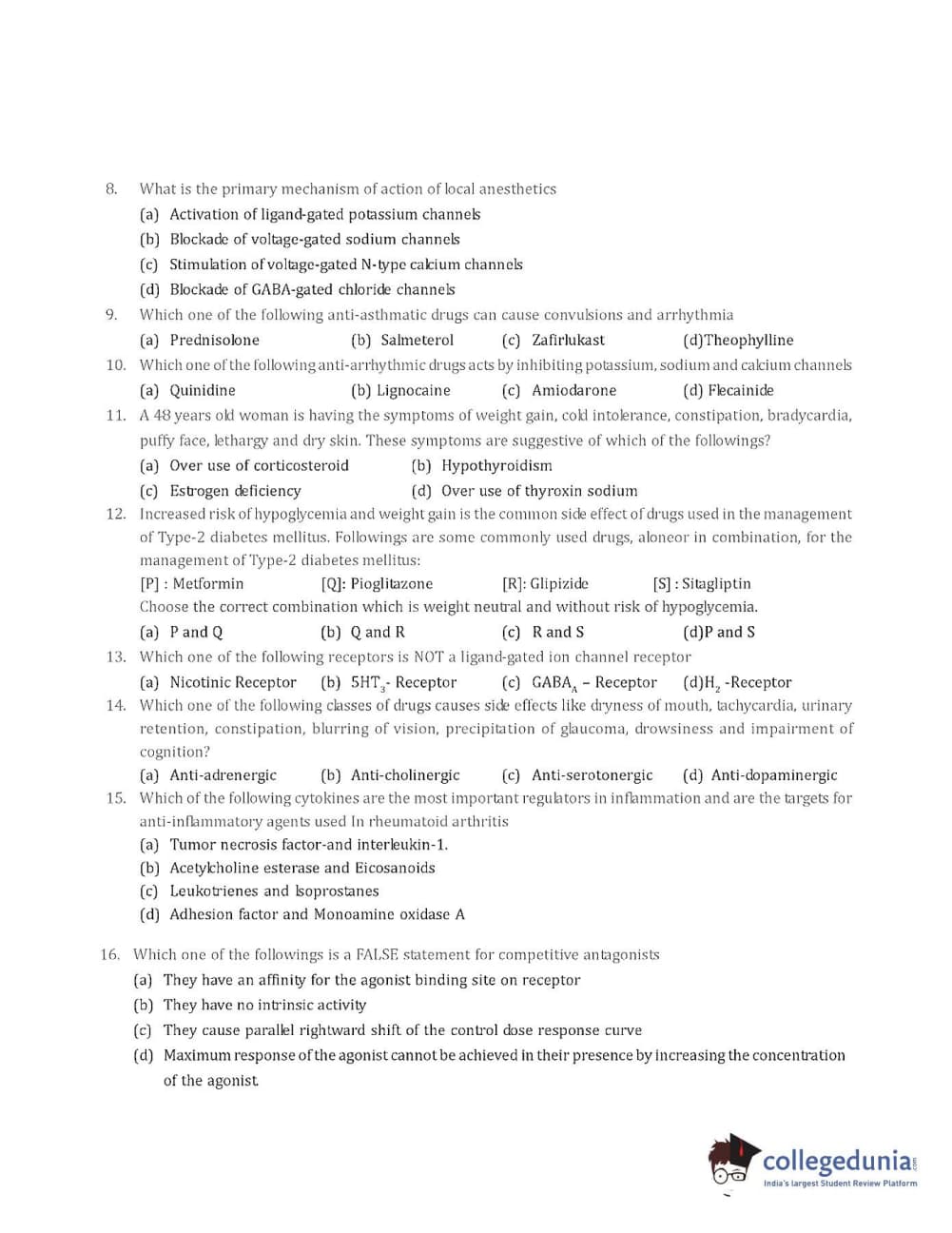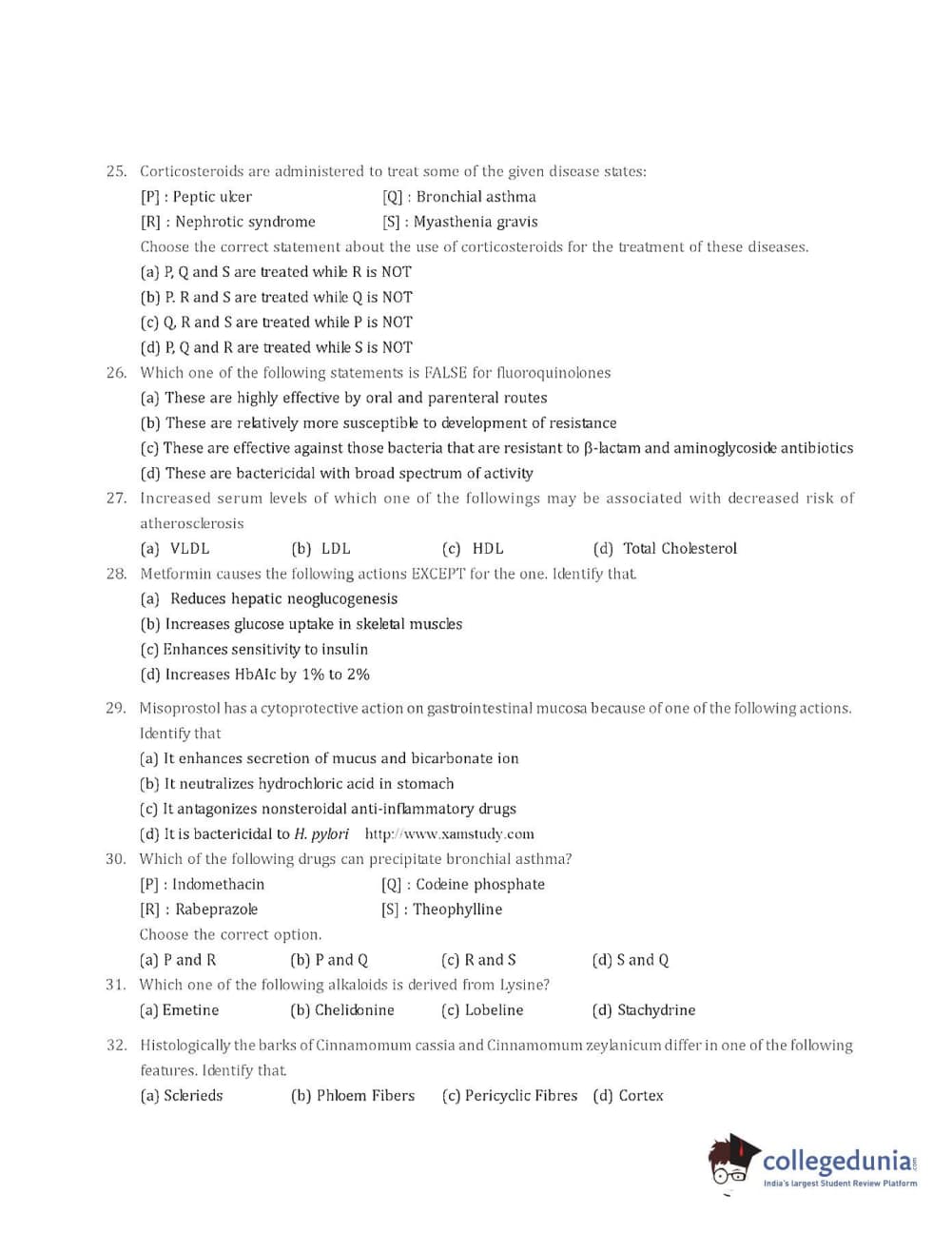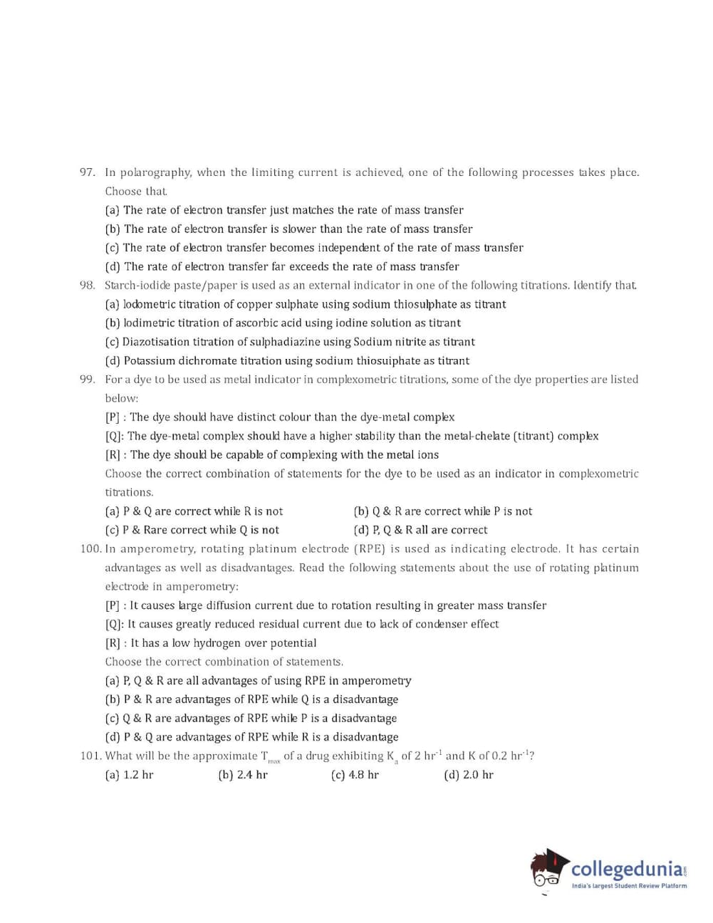 Collegedunia has provided GPAT Previous Year Question paper pdf with answer key in the links given below: