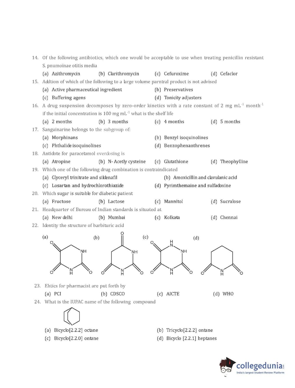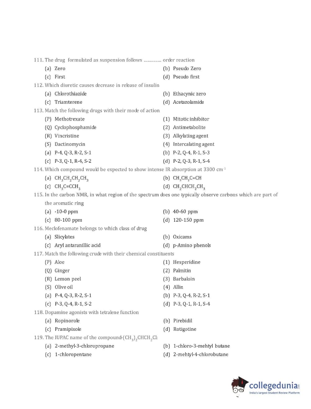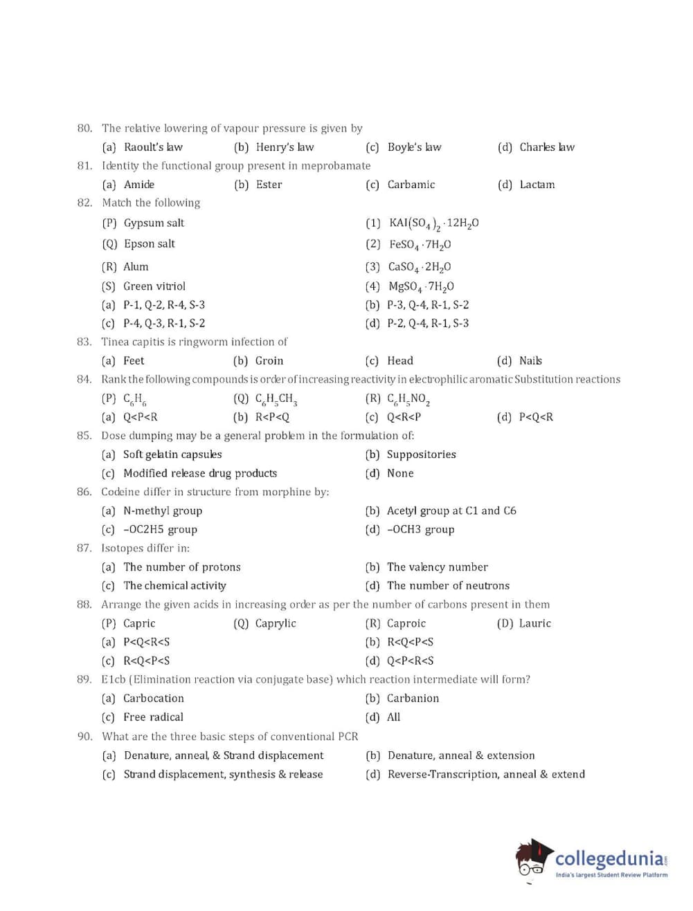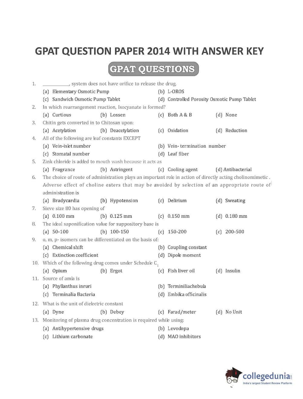 Collegedunia has provided GPAT Previous Year Question paper pdf with answer key in the links given below: