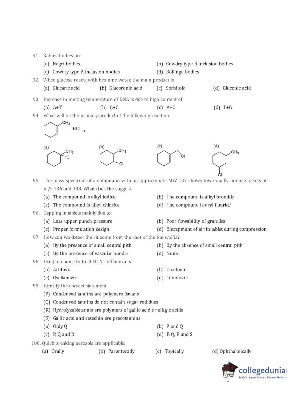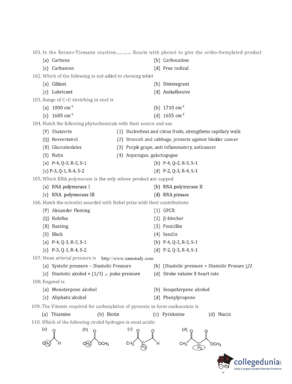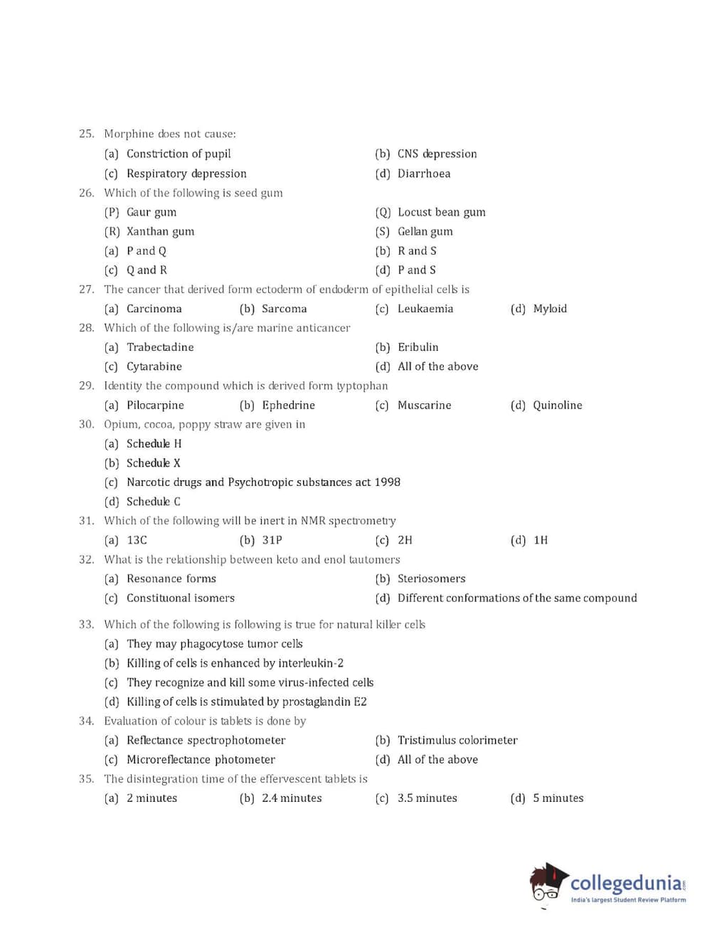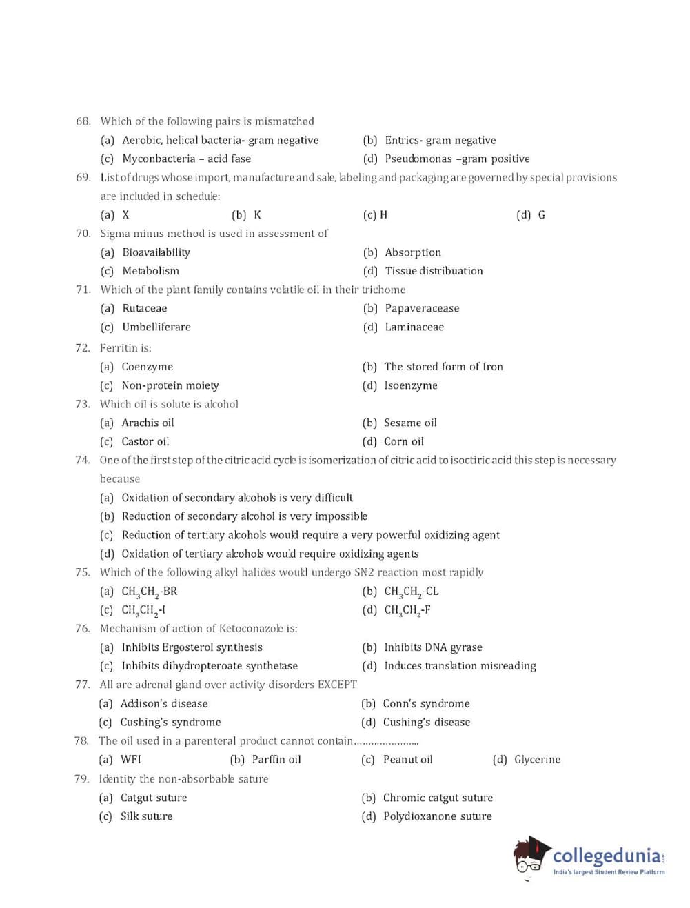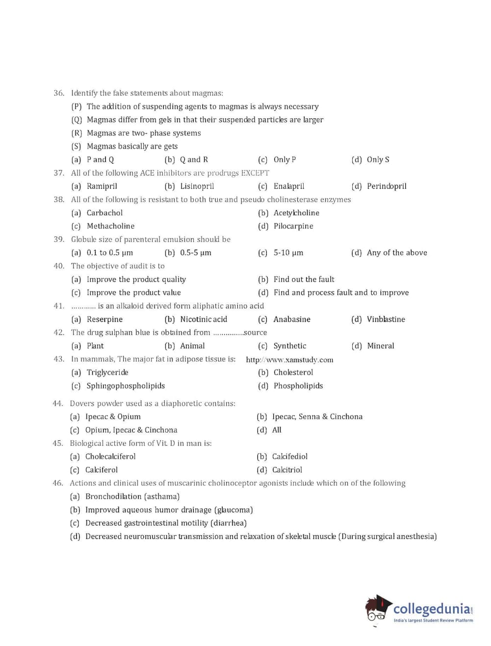 Collegedunia has provided GPAT Previous Year Question paper pdf with answer key in the links given below: