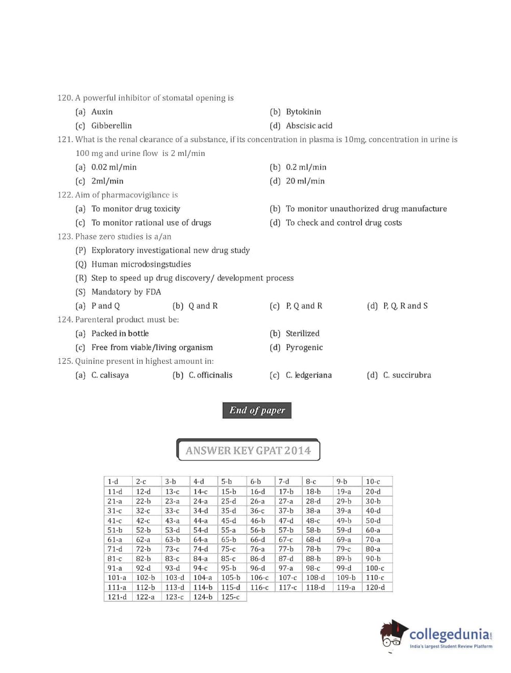 GPAT 2014 Question paper with answer key pdf conducted on February – 25 is available for download. The exam was successfully organized by All India Council for Technical Education (AICTE). The question paper comprised a total of 125 questions.
