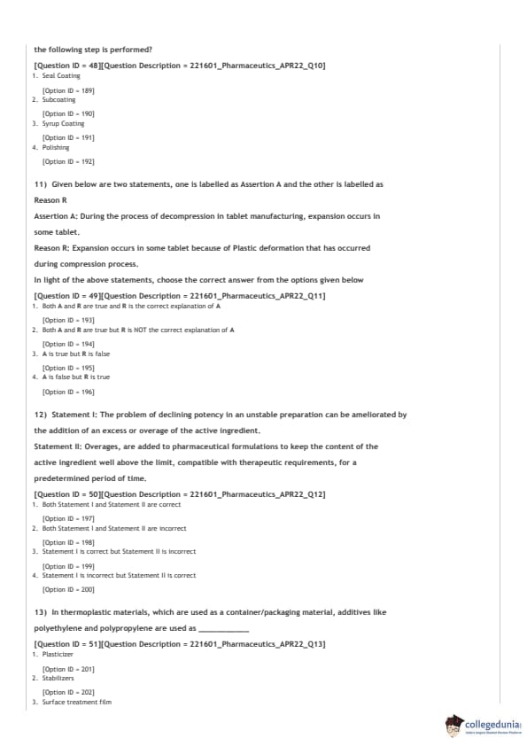 GPAT 2022 Question Paper with Answer Key PDF