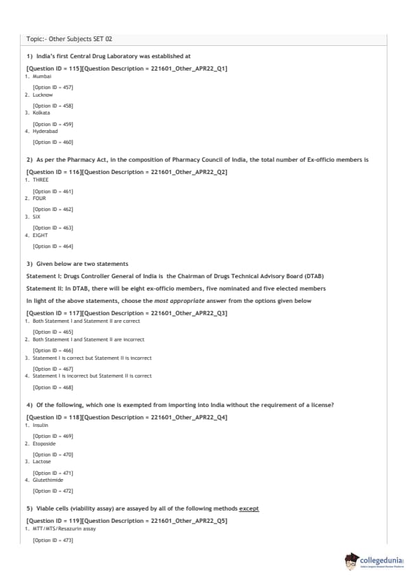 GPAT 2022 Question Paper with Answer Key pdf is available for download. The exam was conducted by National Testing Agency (NTA) on April 9, 2022. The question paper comprised a total of 125 questions divided among 5 sections.