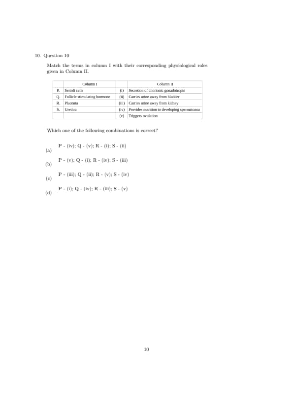 - Sertoli cells (P): Sertoli cells are located in the seminiferous tubules of the testes. They are responsible for providing nutrition to developing spermatozoa. This matches with option (iv).